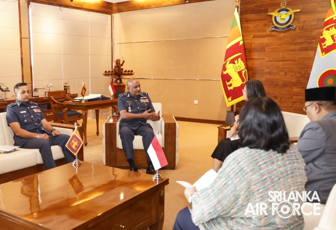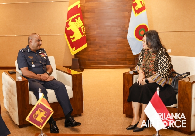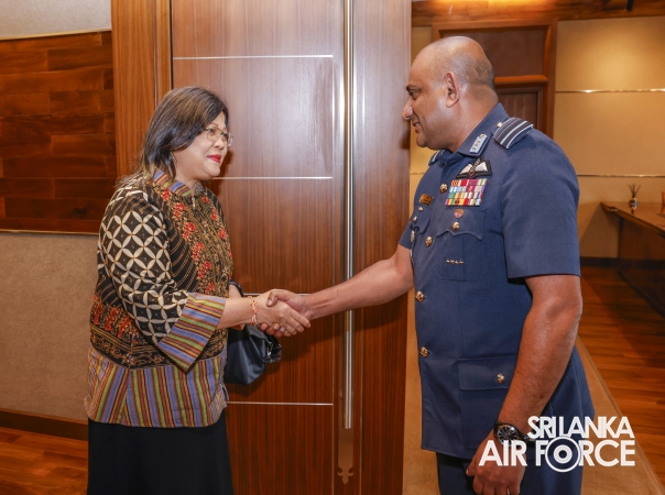The Ambassador of the Republic of Indonesia to Sri Lanka and Maldives, Her Excellency Dewi Gustina Tubing, called on the Commander of the Air Force, Air Marshal Bandu Edirisinghe at the Air Force Headquarters today (15 August 2025).