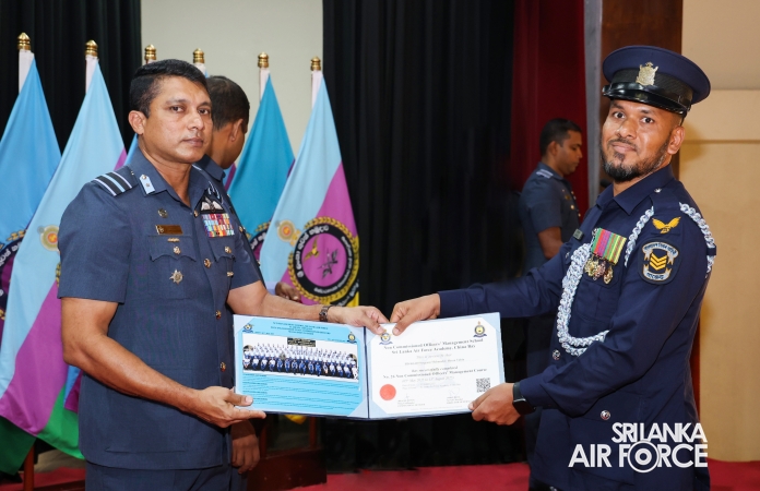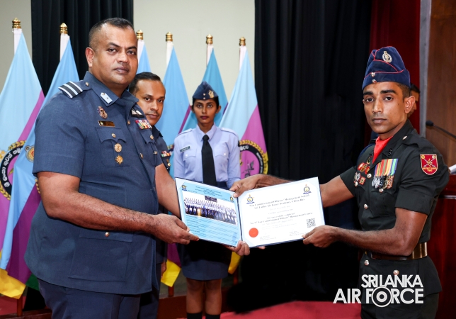 The No. 26 English Medium and No. 97 Sinhala Medium comprised 65 Senior Non-Commissioned Officers and 72 Junior Non-Commissioned Officers from the SLAF, 02 Junior Non-Commissioned Officer from the SL Army, 01 Senior Non-Commissioned Officer from the SL Navy and 02 Senior Non-Commissioned Officers from Bangladesh Army and Air Force. At the ceremony, 142 awardees received certificates to mark the successful completion of the courses.