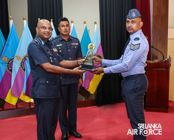 Flight Sergeant Nimalarathne GAKNK and Sergeant Prabath RJUD were recognized as the Best All-Rounders among the Senior Non-Commissioned Officers and Junior Non-Commissioned Officers of the No. 26 English Medium course. Meanwhile, Warrant Officer DM Liyanage and Corporal Ramanayaka SMSKI earned well-deserved awards as the Best All-Round Senior Non-Commissioned Officer and Junior Non-Commissioned Officer respectively in the No. 97 Sinhala Medium Course.