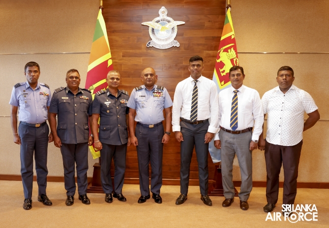 During the courtesy call, the Commander commended Aircraftman Tharanga on his remarkable achievement in setting a new National Record and extended his best wishes for continued success at the upcoming championships.