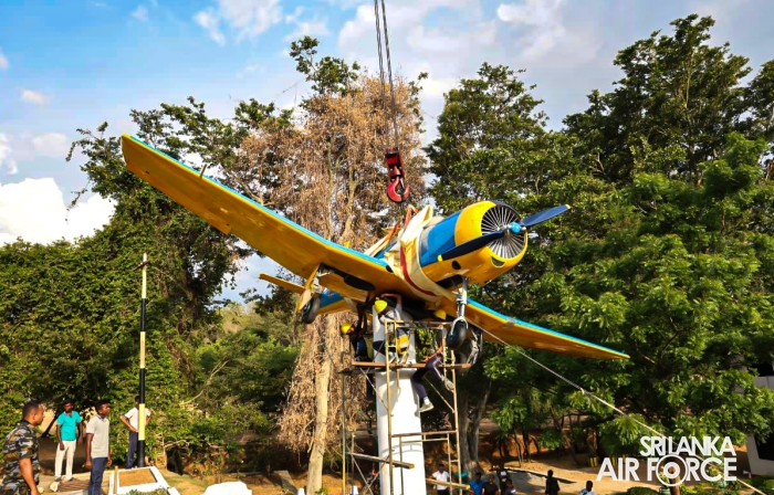 In a remarkable tribute to its proud aviation heritage, the Sri Lanka Air Force has mounted a PT-6 trainer aircraft as a monument at the National Cadet Corps Training Centre, Rantambe.