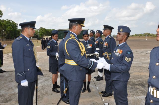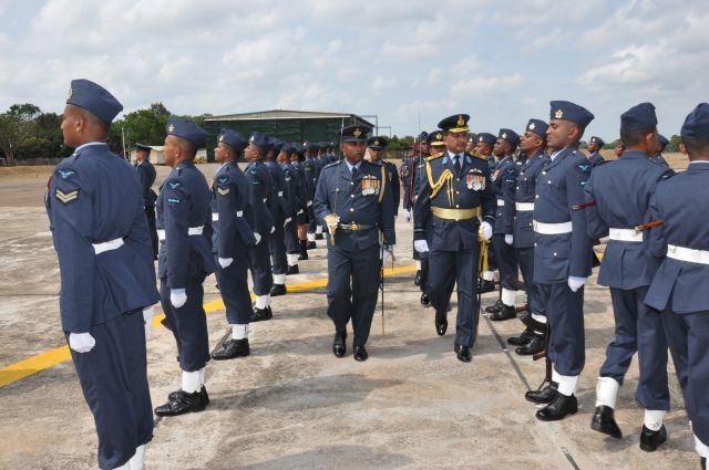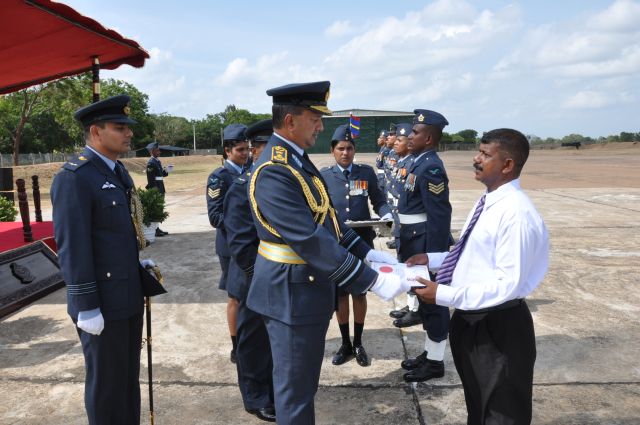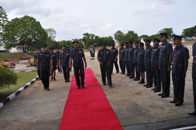 A parade commanded by Base Commander, SLAF Base Anuradhapura, Air Commodore PDKT Jayasinghe welcomed the Commander to the Base premises whilst Wing Commander HU Wijeweera, Wing Commander MASK Maheepala and Squadron leader ADR Liyanaarachchi commanded the three flights respectively.