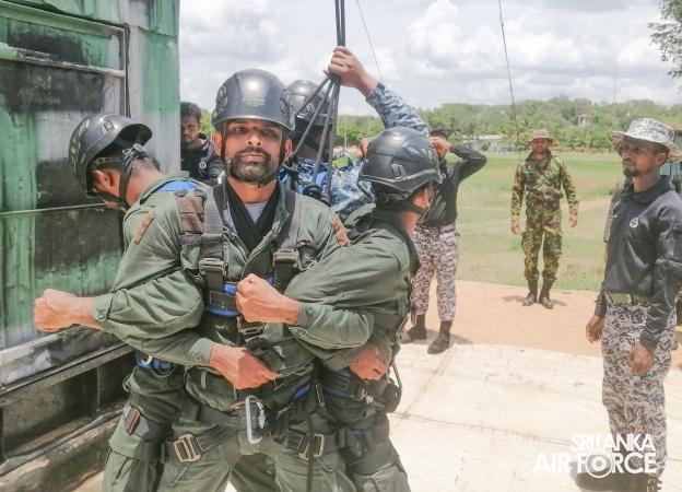 The Regiment Special Forces Training School (RSFTS) at SLAF Station Morawewa successfully conducted the No. 11 Heliborne Operation Course with the participation of 29 personnel. Among them were two foreign officers from the Bangladesh Air Force and Army, one officer from the Sri Lanka Navy and one officer from the Special Task Force (STF). The remaining participants represented the Sri Lanka Army, Sri Lanka Navy, Police STF and SLAF Regiment Special Forces.