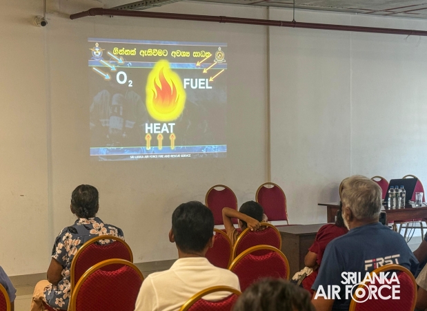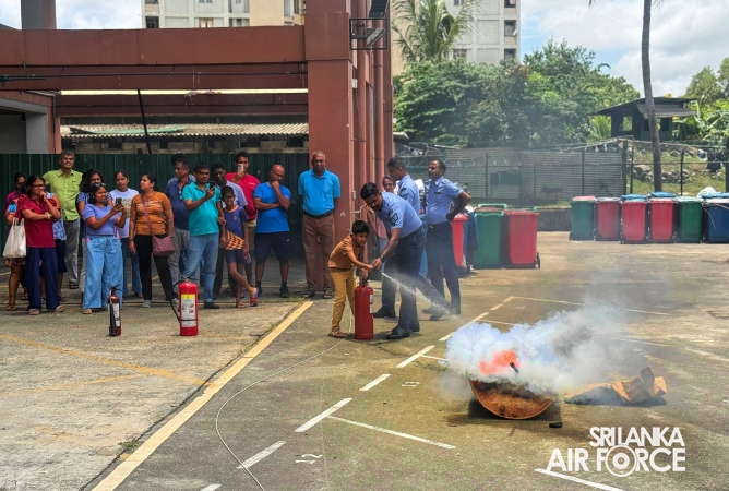 The Sri Lanka Air Force Fire and Rescue Service conducted a Fire Awareness Training Programme for the residents of Oval View Residencies today (30 August 2025).