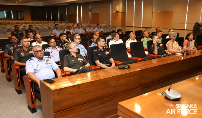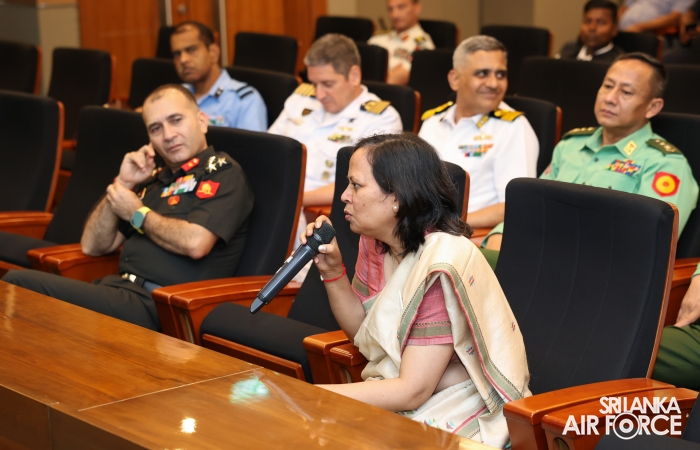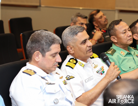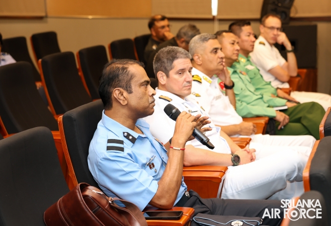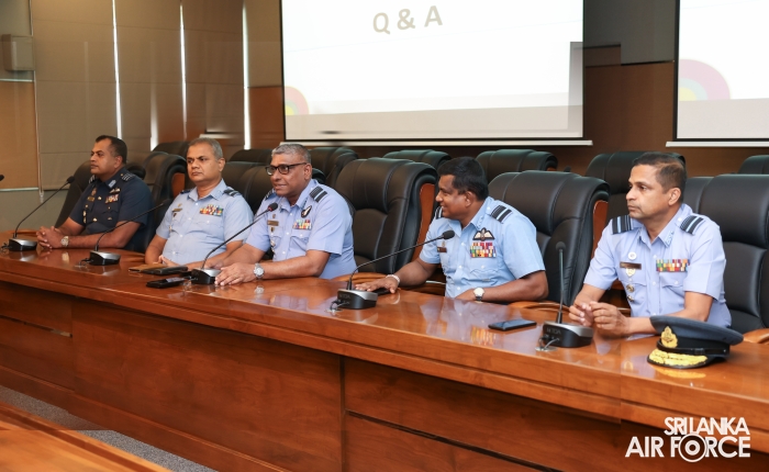 Subsequently, the Commandant SLAF Academy China Bay, Air Commodore Amal Perera, conducted a presentation on the History, Post-Conflict Role and Challenges of the Sri Lanka Air Force. The Deputy Chief of Staff, Air Vice Marshal Demian Weerasinghe, Members of the Air Force Board of Management and Senior Officers were also present at the session.