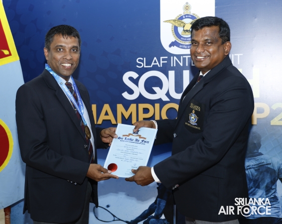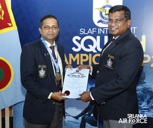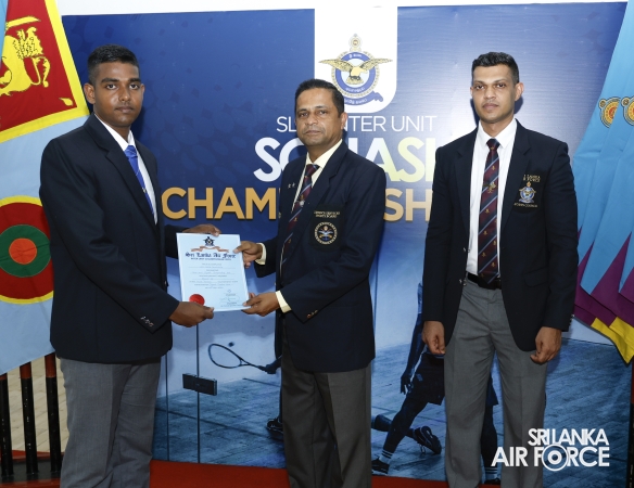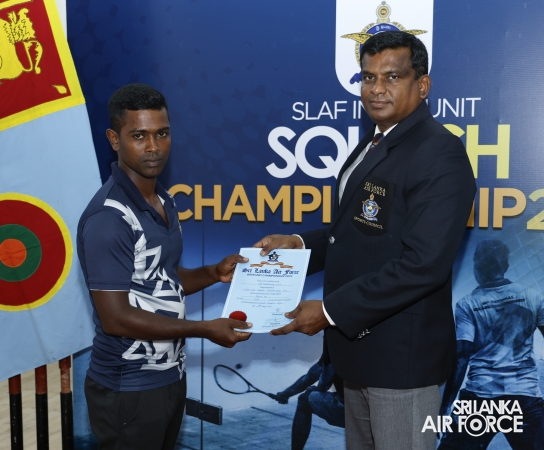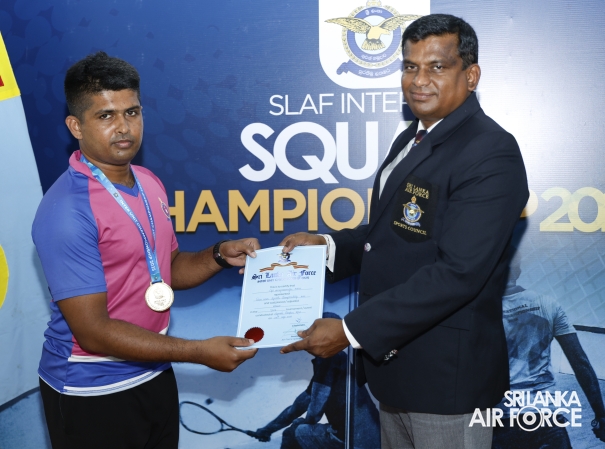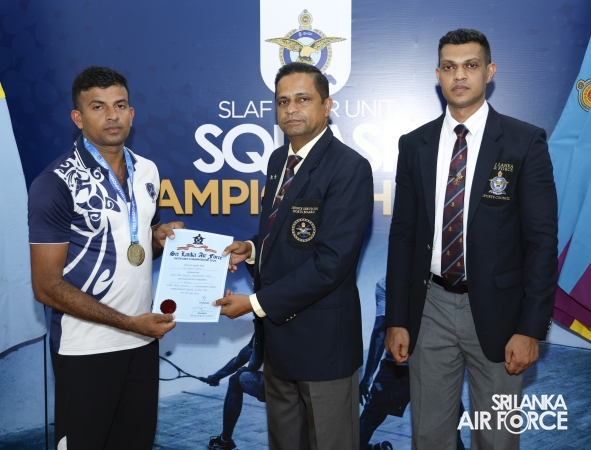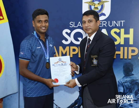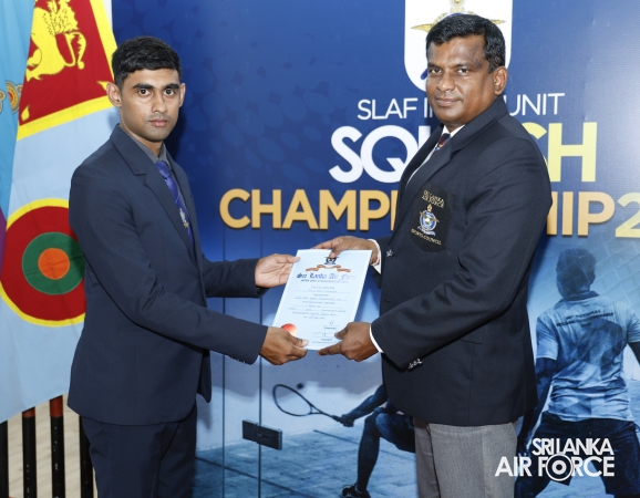 The Acting Director General of Training, Air Vice Marshal Thushara Weeraratne, graced the occasion as the Chief Guest. The Commanding Officer of SLAF Station Sri Jayewardenepura, Air Commodore Buddika Piyasiri, the Chairman of SLAF Squash, Air Commodore Dulip Hewavitharana, Secretary Air Force Sports Council, Group Captain Eranda Geeganage, the Secretary of SLAF Squash, Wing Commander Sanjeewa Nanayakkara, along with senior officers and airmen, were present to witness the finals and the awards ceremony.
