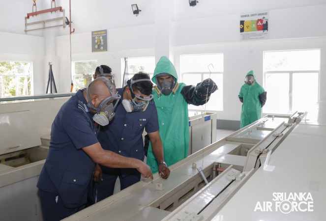Further, the Commander visited and inspected the No.38 Regiment Wing, EODTS, No.05 ADRS, Surface Treatment Plant (STP), which has been established to support the electroplating processes for overhauling aircraft components at the Aircraft Overhaul Wing at SLAF Base Katunayake and all the sections of the station.