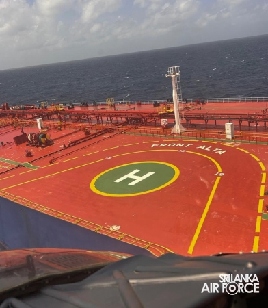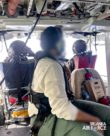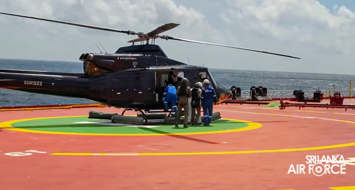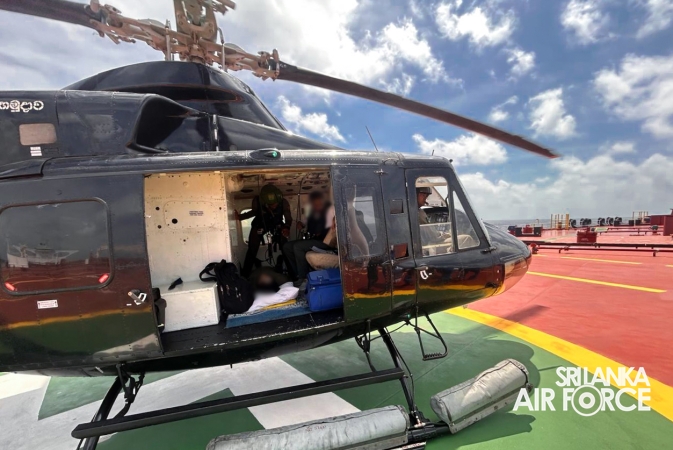 The mission was conducted using a Bell 412 helicopter belonging to No. 4 Squadron of SLAF Base Ratmalana. Upon receiving information about a medical emergency onboard, the SLAF deployed the helicopter to airlift the patient and ensure timely medical attention.
