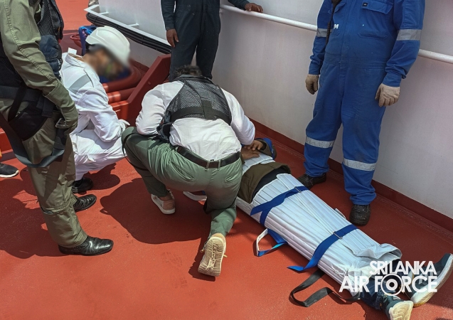 The SLAF successfully carried out a long-range medical evacuation today (07 September 2025) from a merchant vessel located approximately 102 km off the southern coast.