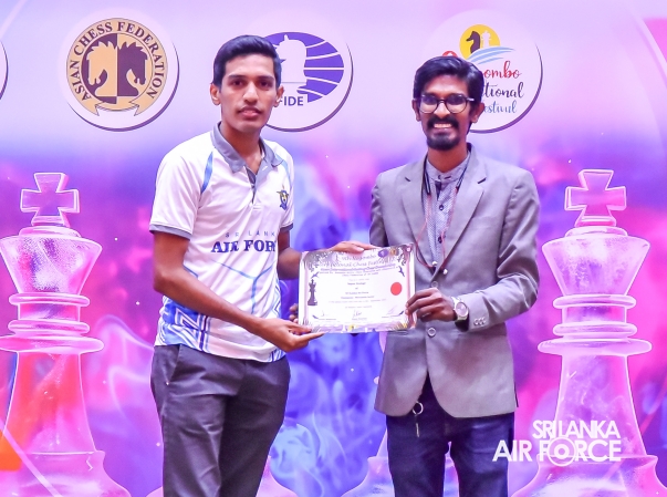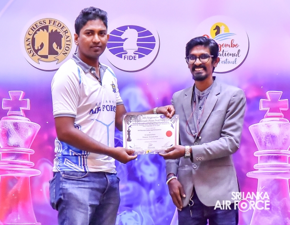 A five-player squad from the SLAF Chess Team participated in the 9th Negombo International Chess Festival 2025, held from 3 to 8 September 2025 at Wasana Resort, Kandana. After completing nine rounds of chess against 328 participants, the Air Warriors secured the championship title in the Mercantile category.