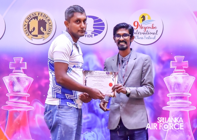 The awards presentation was held today(8 September 2025) at the tournament venue, graced by the President of the Gampaha District Chess Association and Tournament Director, Dr. Dishal Ruwinga, Chief Arbiter Mr. Niroshan Chathuranga and Deputy Chief Arbiter Mr. Sanjaya Chandraratne. The tournament was organized by the SSC International Chess Academy.