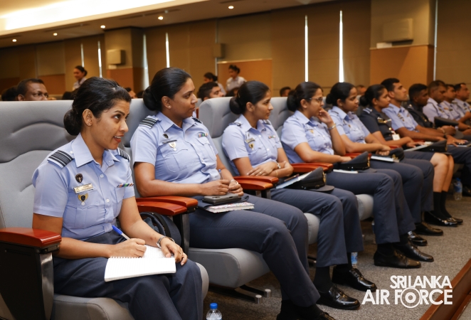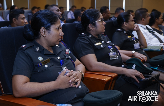 An awareness programme, conducted as part of the continuation of legal education for service personnel, on the ‘Provisions of the Proceeds of Crimes Act’ and ‘Ethics, Honour, Integrity, and Respect towards Military Discipline’, was successfully held today (08 September 2025) at Air Force Headquarters. The event was organized by the Legal Division of the SLAF under the guidance of Director Legal, Air Commodore Sureka Dias.