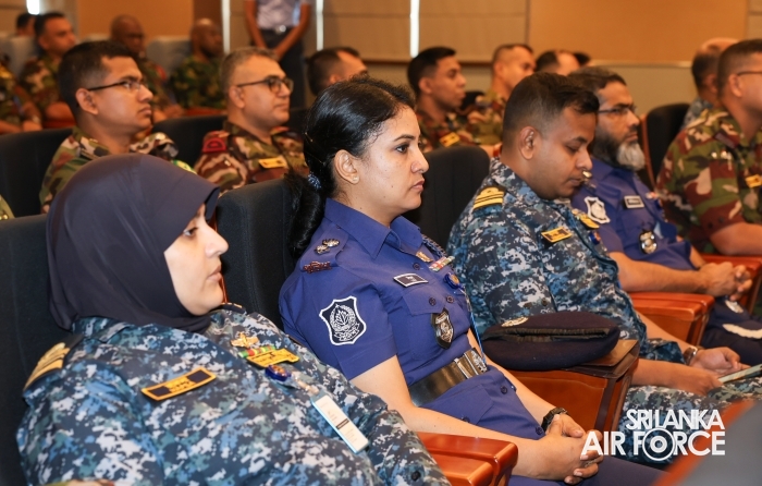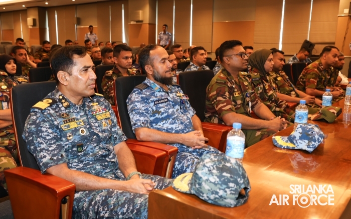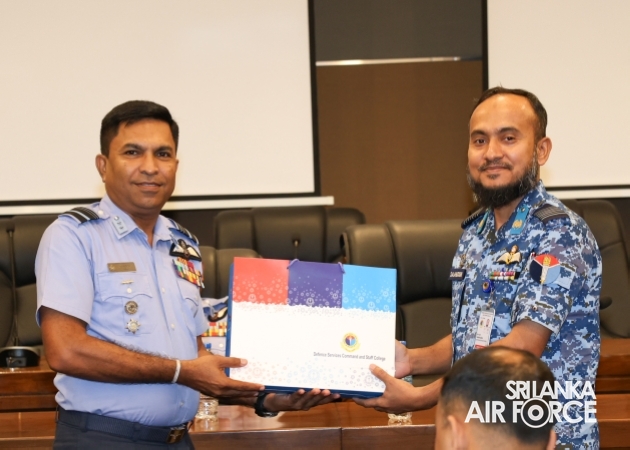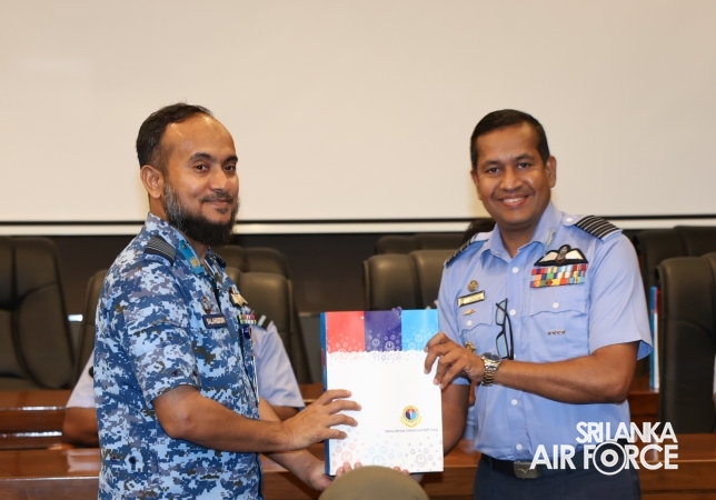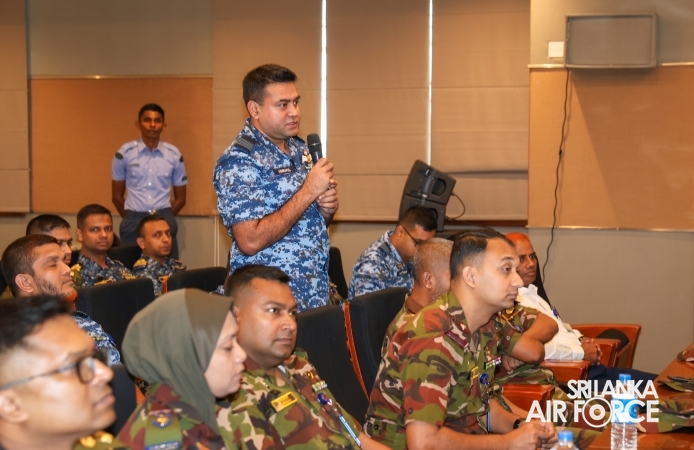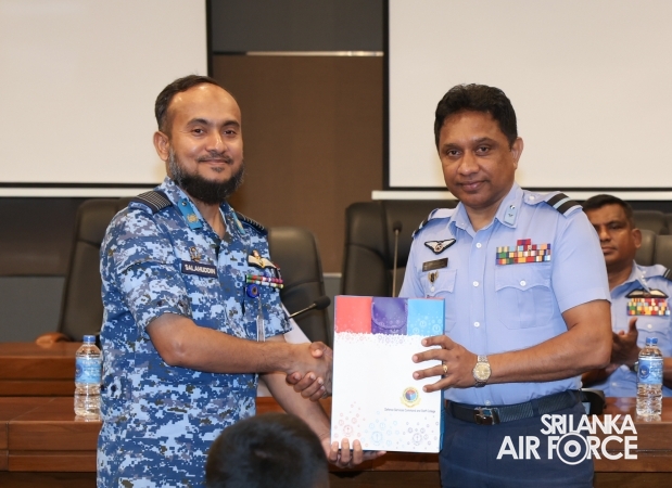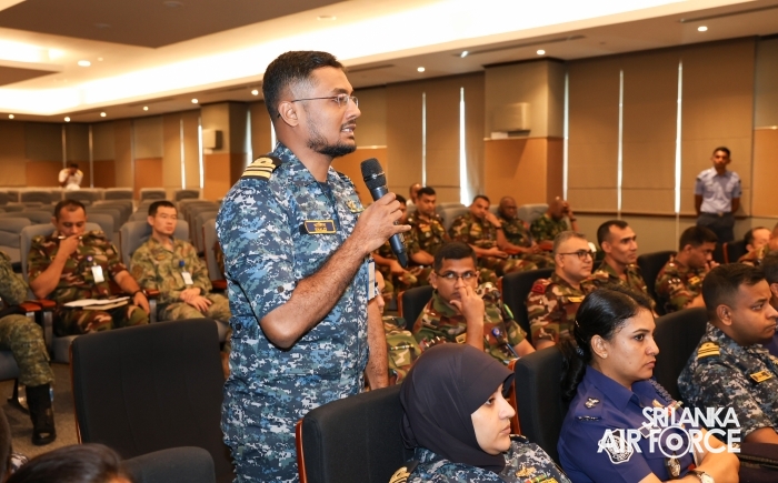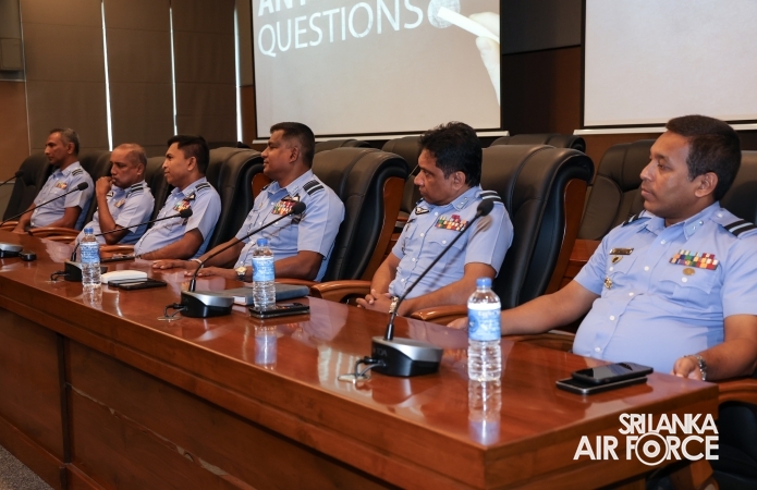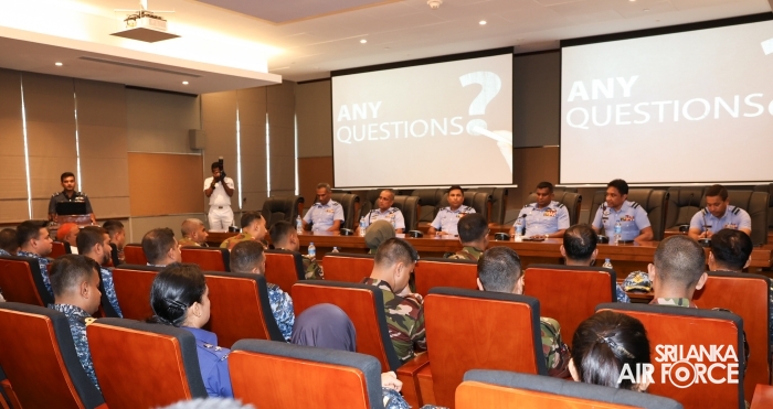 Subsequently, Wing Commander Tharindu Kodithuwakku, conducted a presentation on the History, Post-Conflict Role and Challenges of the Sri Lanka Air Force. The Director General Air Operations, Air Vice marshal Dhammika Dias, Director General Training, Air Vice Marshal Thushara Weerarathne and Senior Officers were also present at the session.