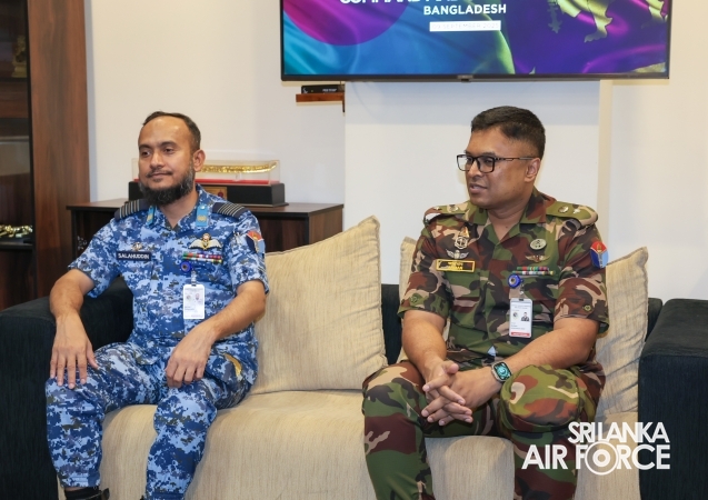 The head of the delegation, Group Captain Salahuddin Ahmed, along with a few members, called on the Deputy Chief of Staff of the Air Force, Air Vice Marshal Demian Weerasinghe, where symbolic mementos were exchanged to mark the occasion.