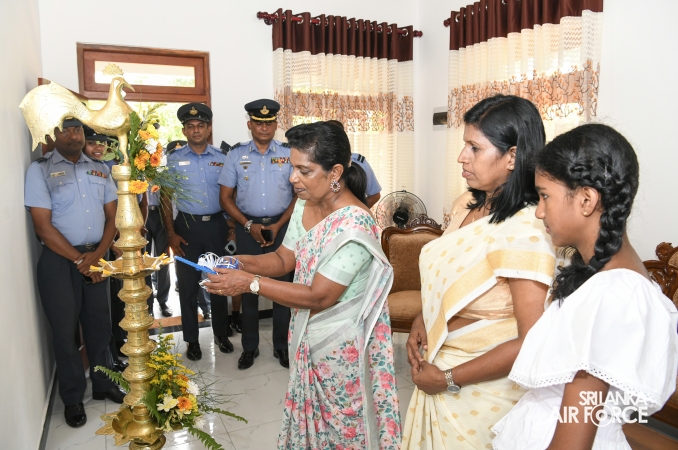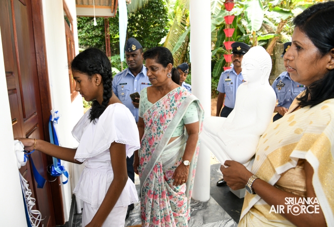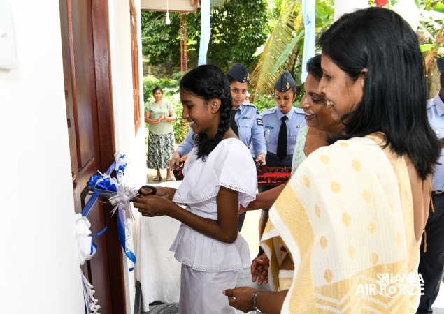 A house constructed under the SLAF Seva Vanitha Unit was handed over to the family of Squadron Leader RD Sooriyarachchi (Deceased) today (10 September 2025) and the housewarming ceremony was held at Maithri Road, Ingiriya. The Chairperson of the SLAF Seva Vanitha Unit, Mrs. Krishanthi Edirisinghe, graced the occasion as the Chief Guest.