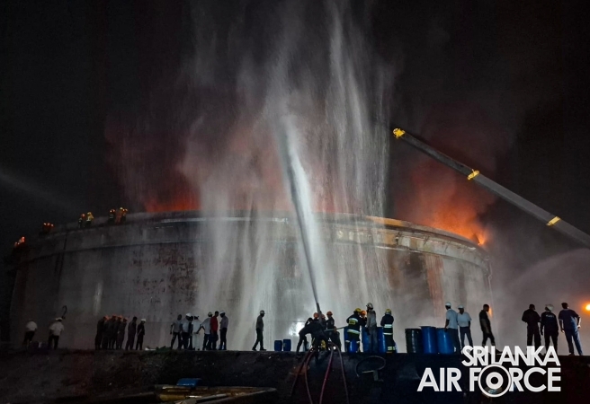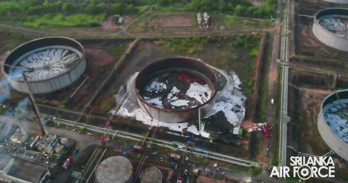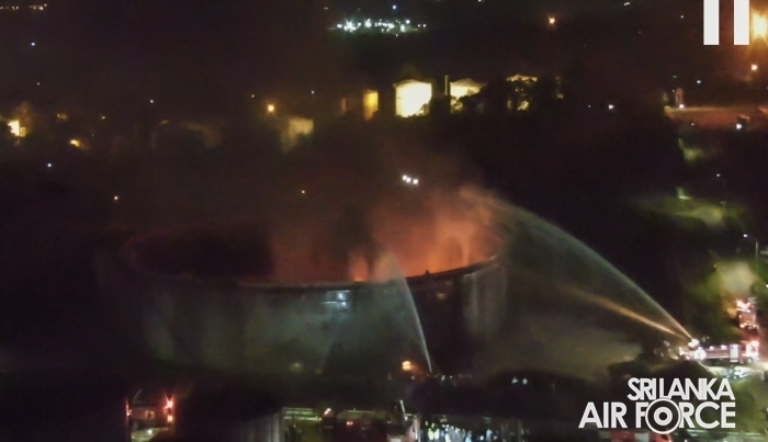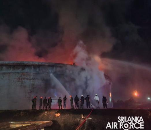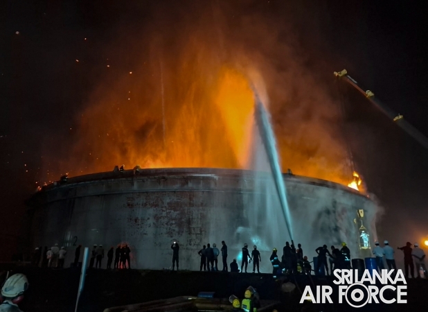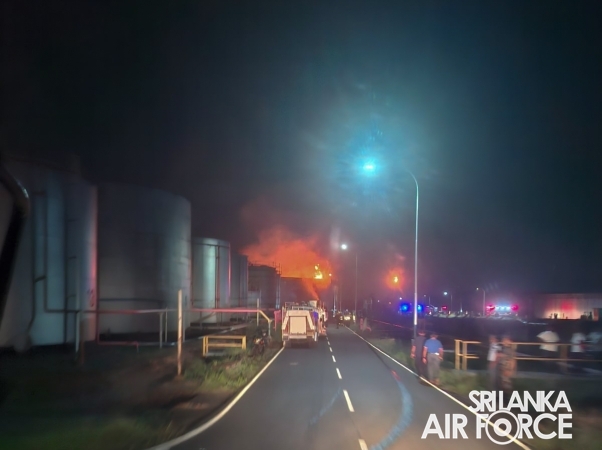 A fire broke out in Crude Oil Tank No. 2 at the Sapugaskanda Oil Refinery yesterday evening (10 September 2025). Following an emergency request, firefighting teams from the SLAF were promptly deployed to assist in containing and extinguishing the blaze.