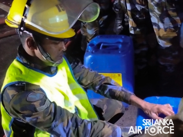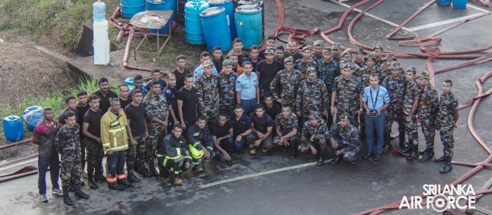 Firefighters from SLAF Base Katunayake, SLAF Base Ratmalana, and SLAF Station Colombo, together with the respective Officers-in-Charge of Fire Sections, responded immediately with fire tenders. The operation was conducted under the directives of the Director General Air Operations, Air Vice Marshal Dhammika Dias. The Chief Fire Officer, Group Captain Hemantha Balasooriya, was present throughout the operation, while on-site firefighting efforts were directed by the Commanding Officer of the Fire School and Fire Tender Maintenance Squadron (FS&FTMS), Group Captain Chamil Hettiarachchi.