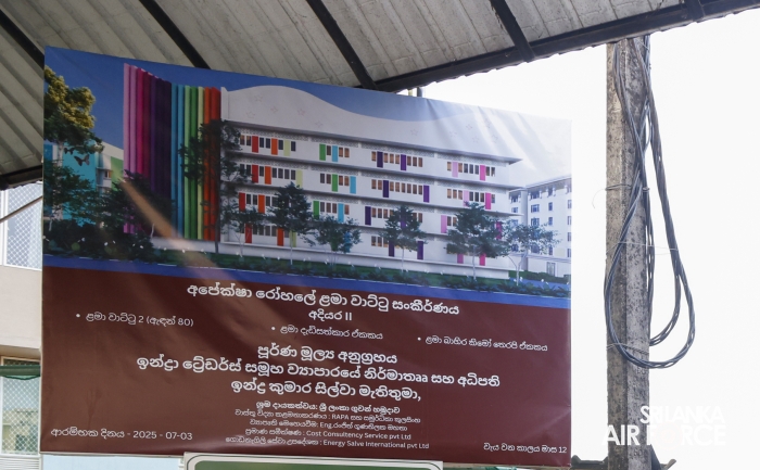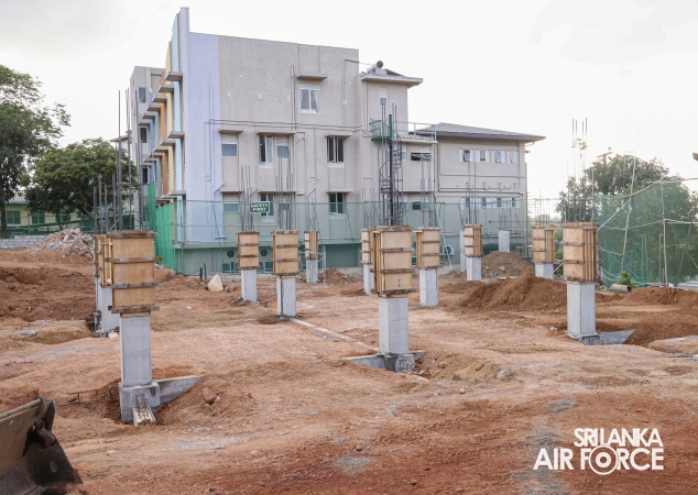 Under the financial sponsorship of Mr. Indra Kumara Silva, Founder and Chairman of the Indra Traders Group, the construction of a new five-storey building at Maharagama Apeksha Hospital is underway, with skilled supervision and dedicated labour provided by the Sri Lanka Air Force. The Commander of the Air Force, Air Marshal Bandu Edirisinghe, conducted a special inspection today (12 September 2025), reviewing the progress of the new Children’s Ward Complex.