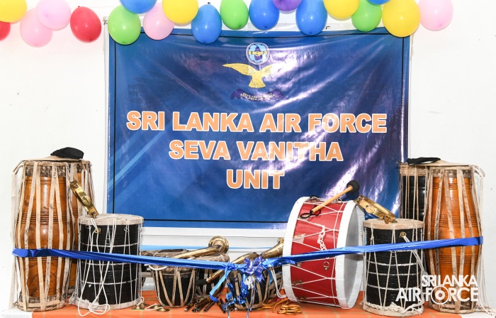 The Chairperson of the SLAF Seva Vanitha Unit, Mrs. Krishanthi Edirisinghe, together with the Commanding Officer of SLAF Station Bandaranaike International Airport, Group Captain Nilindra Perera, and the President of the Station’s Seva Vanitha Unit, Mrs. Hansika Perera, participated in a musical instruments handing-over ceremony held yesterday (15 September 2025) at Walana Lakshmi Junior School, Katunayake.