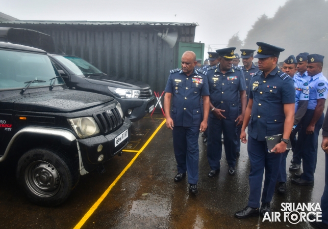 The Commander of the Air Force, Air Marshal Bandu Edirisingh, conducted the Annual Commander’s Inspection at SLAF Station Pidurutalagala today (19 September 2025). The Commander was welcomed by the Commanding Officer, Group Captain Nalin Wewakumbura and was accorded a street line on his arrival.