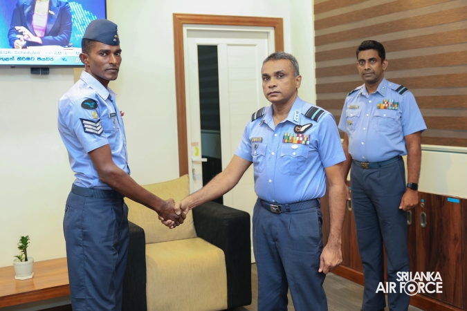 Commander of the Air Force, Air Marshal Bandu Edirisinghe, commended Warrant Officer N.Sathyarajan of the Air Communicator Trade on 26 September 2025 at Air Force Headquarters, Sri Jayewardenepura, for his extraordinary act of bravery.