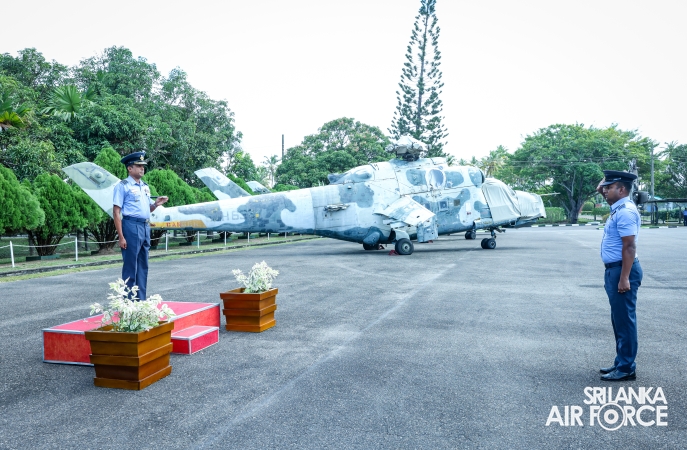 The Change of Command at the Aircraft Engineering Wing (AEW), SLAF Base Katunayake was conducted yesterday (29 September 2025). The traditional Handing Over / Taking Over parade took place at the Wing premises where the outgoing Acting Commanding Officer Wing Commander KEND Gunaratne USP, MPP (Sing), MSc (Def & Stat Stu), BSc (Aero Eng - USA), Pg Dip (Def Mgt), AMIE (SL), psc handed over the command to Group Captain WUS De Silva USP, BSc (Def Stu) in Mgt, psc, Z.
