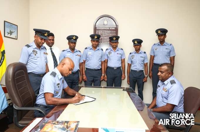 The traditional Handing Over/ Taking Over Parade took place at the Electronics & Telecommunication Engineering Wing, where the outgoing Commanding Officer, Group Captain MAS Heshal USP, MSc (Def & Strat Stu), psc handed over the command to Group Captain UI Samaraweera USP, MSc (Def & Strat Stu), BSc (Eng), Pg Dip (Def Mgt), Pg Dip (Aero Eng-Elect), AMIE (SL), psc, Z.