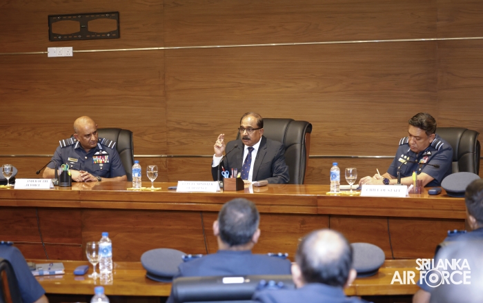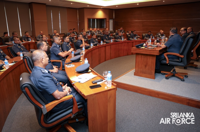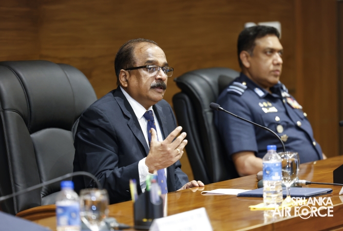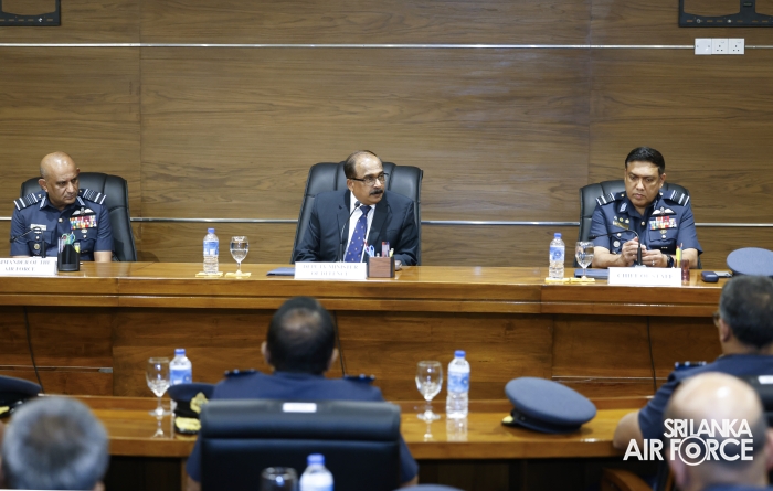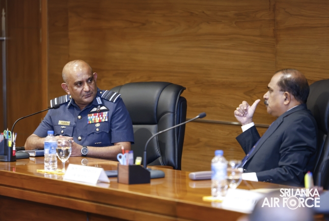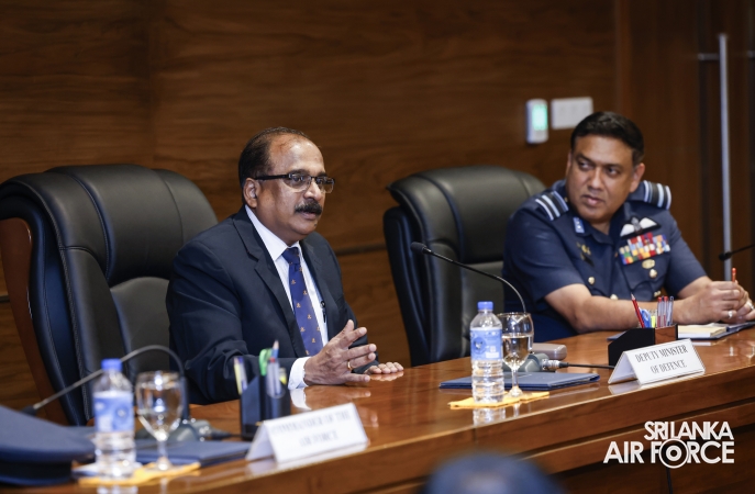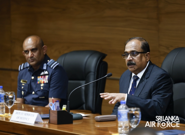 The Deputy Minister was received by the Commander of the Air Force, Air Marshal Bandu Edirisinghe and accorded a ceremonial welcome. He later held discussions with the Commander and met with the Air Force Board of Management on matters related to operational and administrative responsibilities.