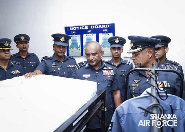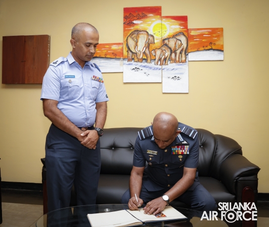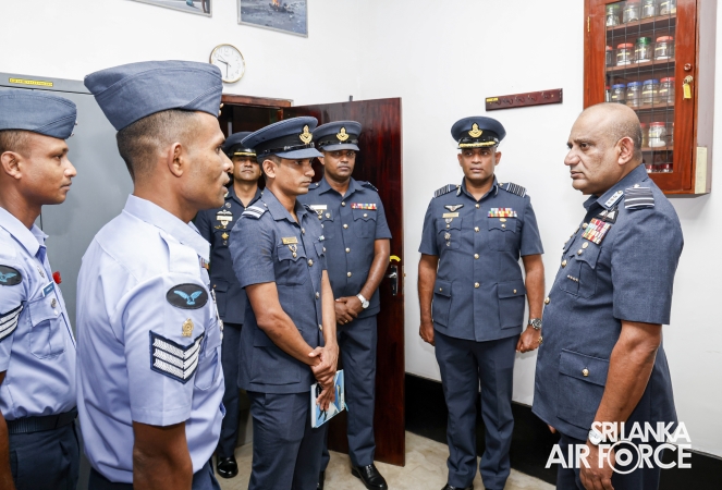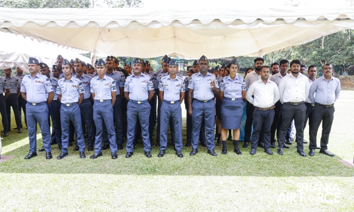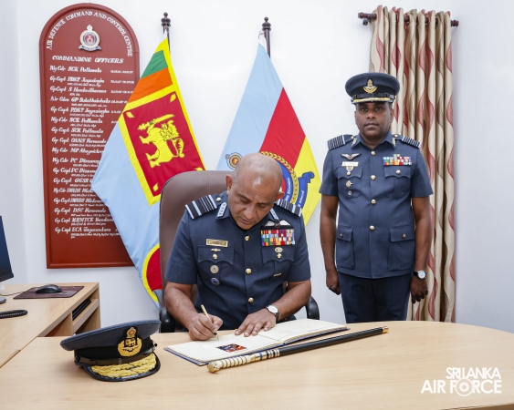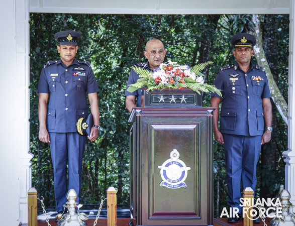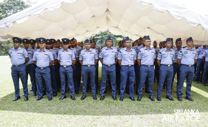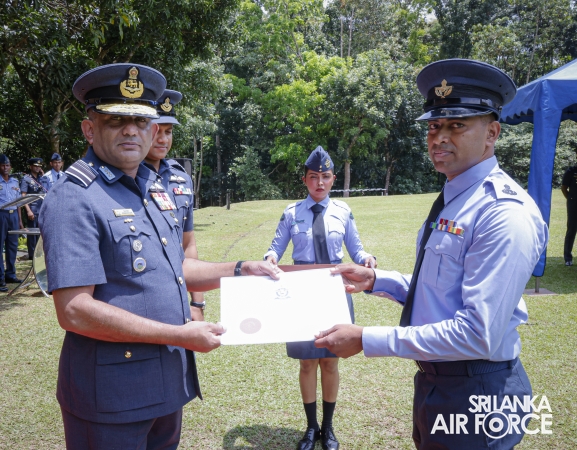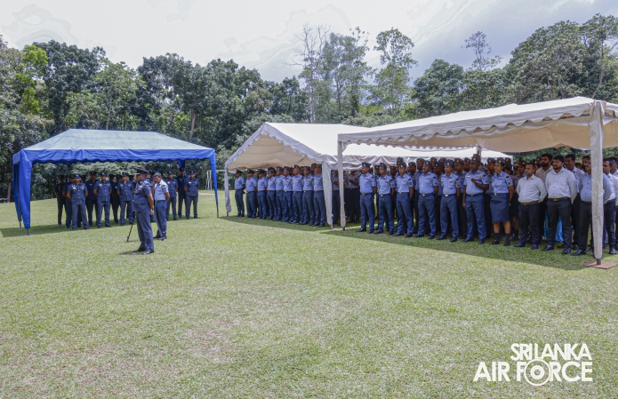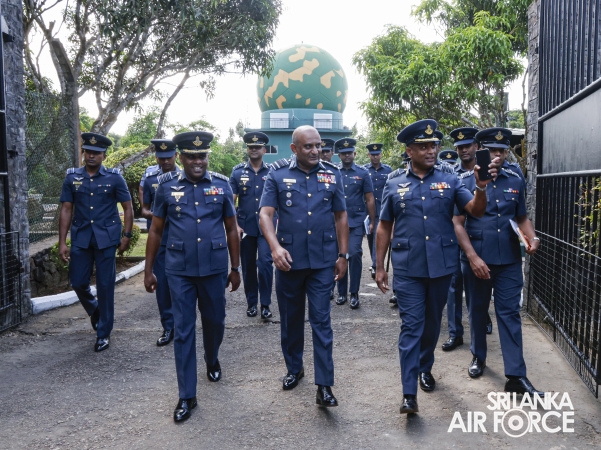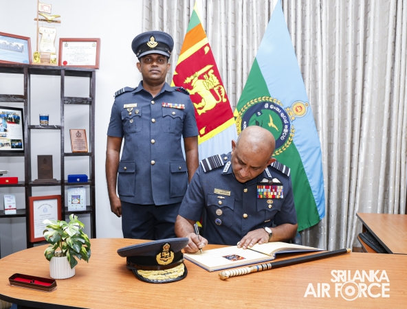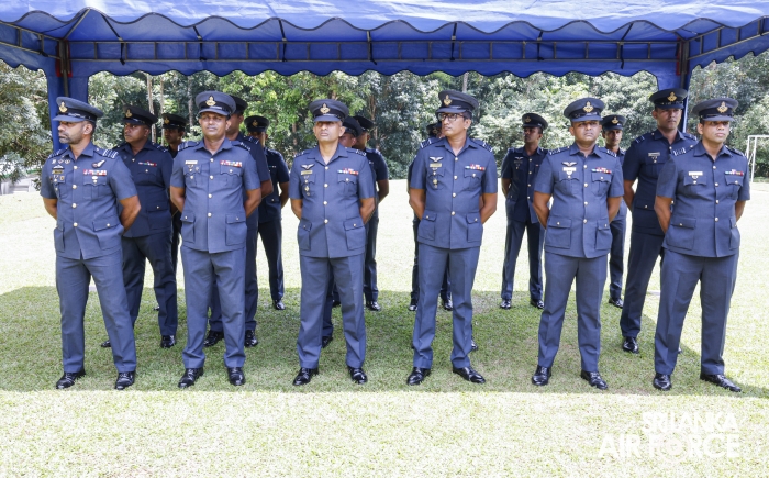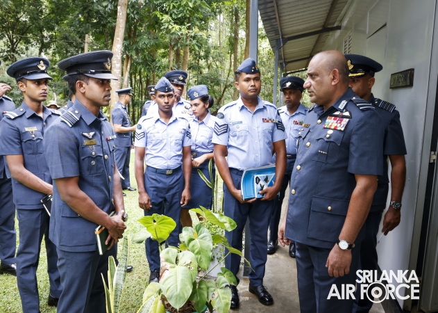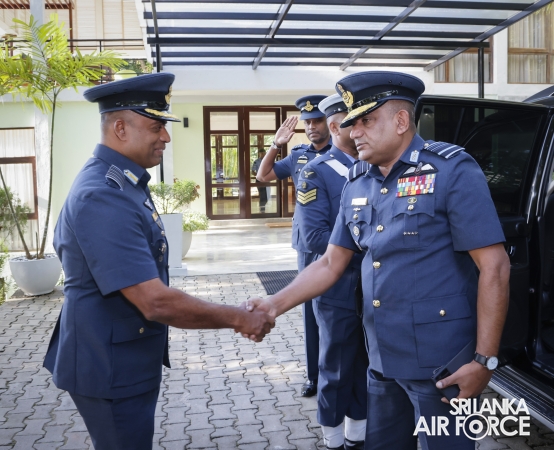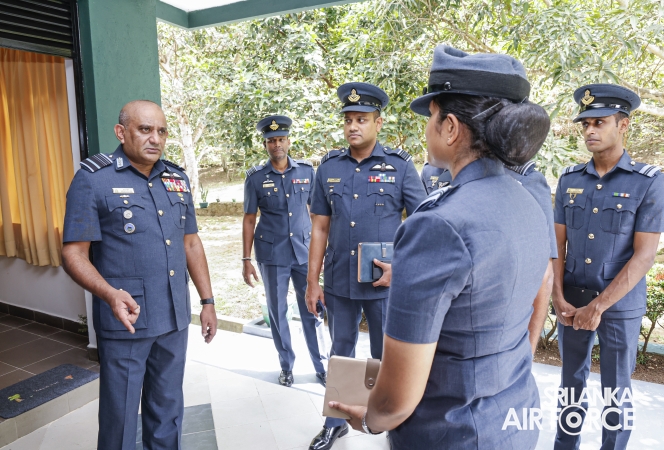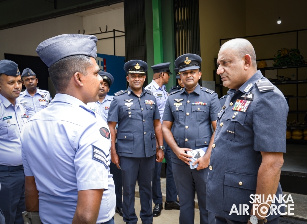 The Commander of the Air Force, Air Marshal Bandu Edirisinghe, conducted the annual Commander’s Inspection at SLAF Station Mirigama today (03 October 2025). The Commander was warmly welcomed on arrival by the Commanding Officer of SLAF Station Mirigama, Group Captain Thushara Bandara.