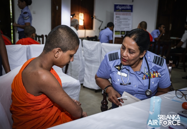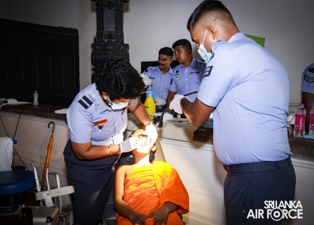 With the guidance of the Commander of the Air Force, Air Marshal Bandu Edirisinghe and the Director General Health Services, Air Vice Marshal (Dr.) Lalith Jayaweera, along with Director Medical Services, Air Commodore (Dr.) Neeluka Abeysekara and Director Dental Services, Air Commodore (Dr.) Kumudu Weerasekara, a Medical and Dental Clinic was successfully conducted today (21 October 2025) at the Temple of the Sacred Tooth Relic, Kandy. The programme was conducted by Air Force Medical and Dental Officers and Medical and Dental staff, providing essential healthcare services to the Buddhist Monks of the Asgiri and Malwathu chapters, as well as the civilian staff of the Temple of the Tooth Relic and their family members.