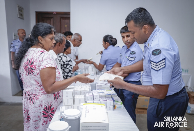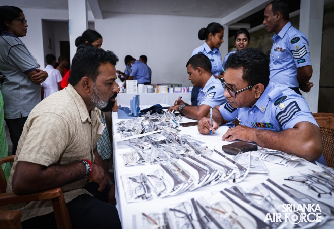 A notable highlight of the programme was the distribution of reading glasses generously donated by the SLAF Seva Vanitha Unit. The distribution followed consultations conducted by Consultant Eye Surgeon, Group Captain Abhaya Jayasekara, ensuring that beneficiaries received appropriate optical support. A total of 351 individuals benefited from the Medical Clinic, while 171 individuals received treatment from the Dental Clinic.