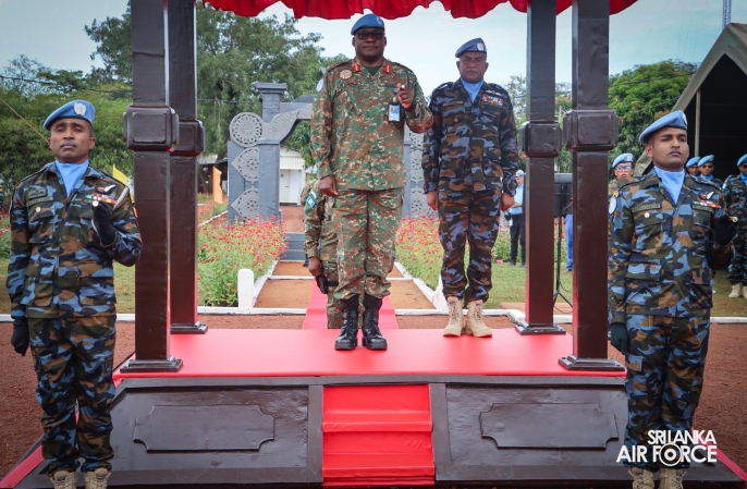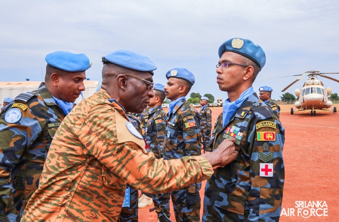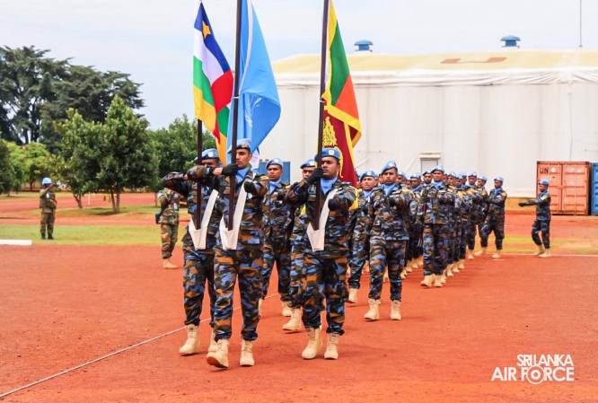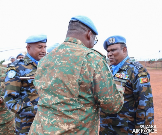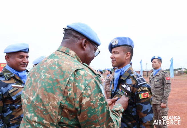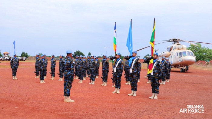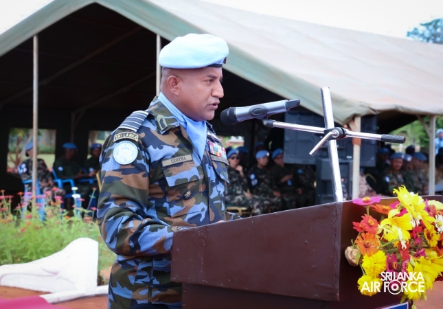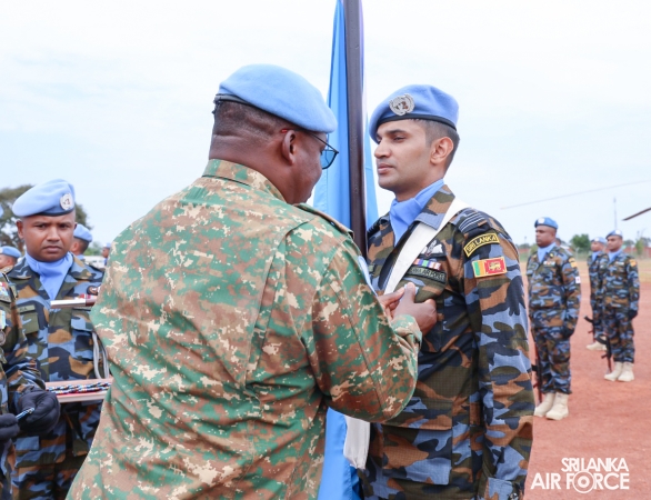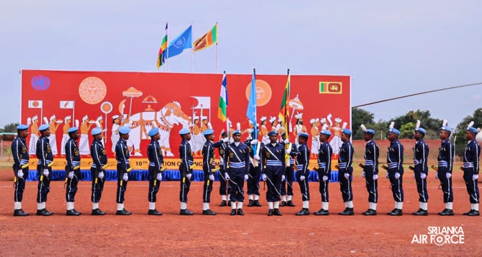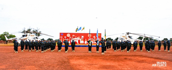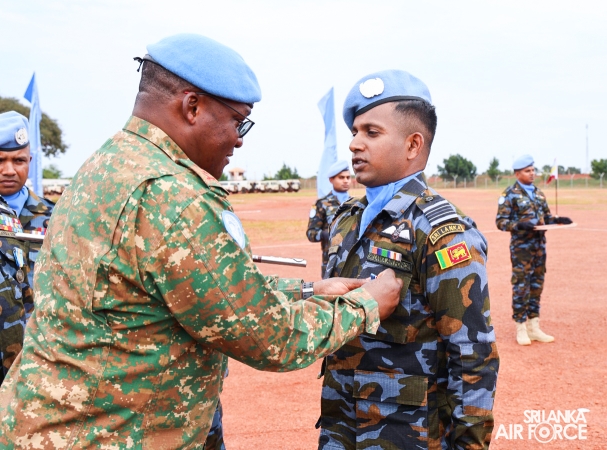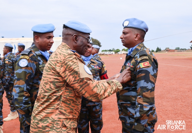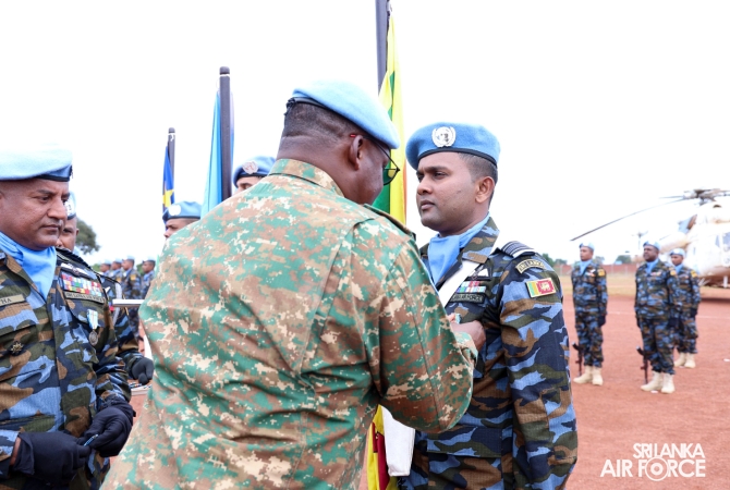 The United Nations Peacekeepers' Medal Awarding Parade of Sri Lanka Air Force 10th Aviation Contingent deployed in Bria, Central African Republic was held glamorously today (22 October 2025). The Force Commander of MINUSCA, Lieutenant General Humphrey Nyone took the salute during the ceremony as the Chief Guest and reviewed the parade.