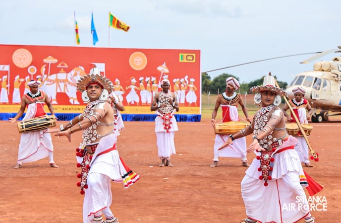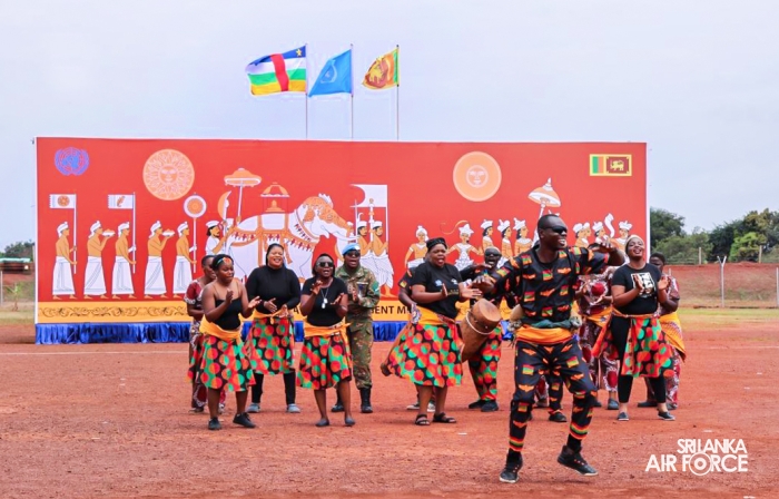 The Chief Guest was received by the Contingent Commander of the 10th Sri Lanka Aviation Contingent, Group Captain Uditha De Silva upon his arrival. The Air Liaison Officer of the Contingent, Wing Commander Krishan Gunarathne commanded the parade, which was followed by a traditional "Kandyan" dancing performance with drum percussion and a drill display.