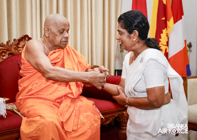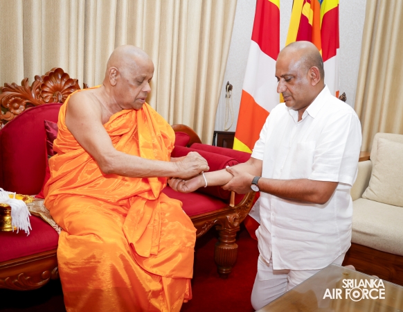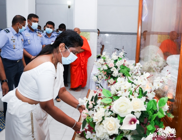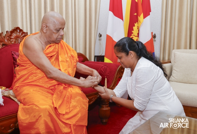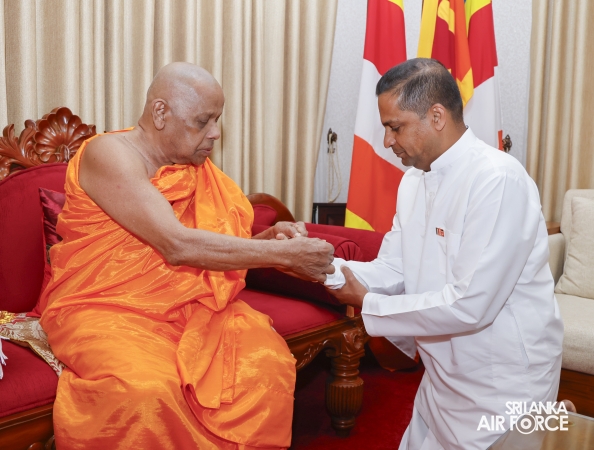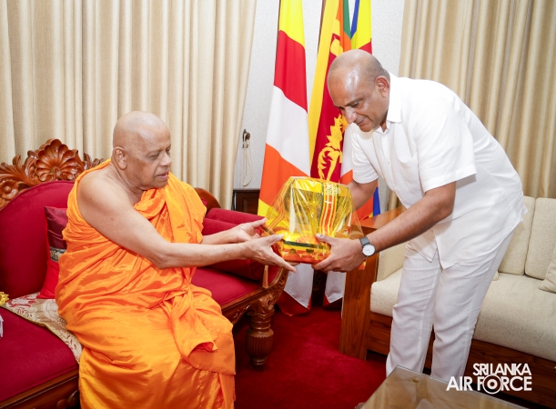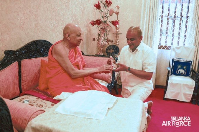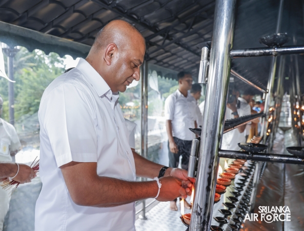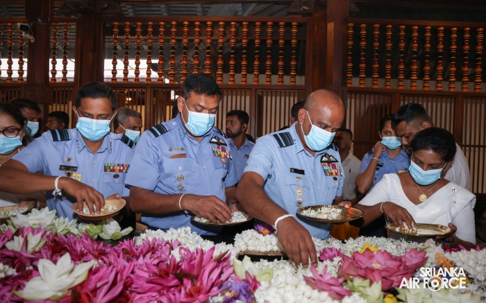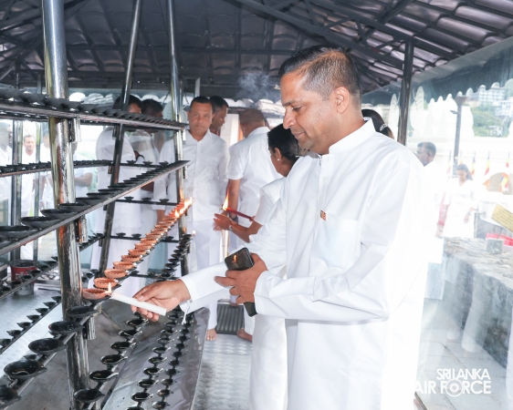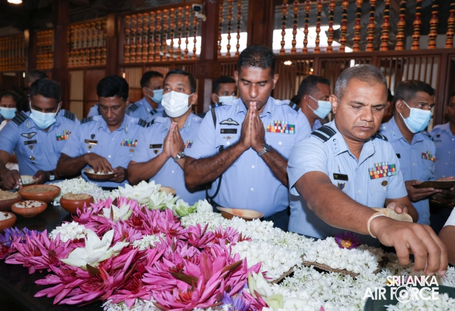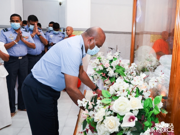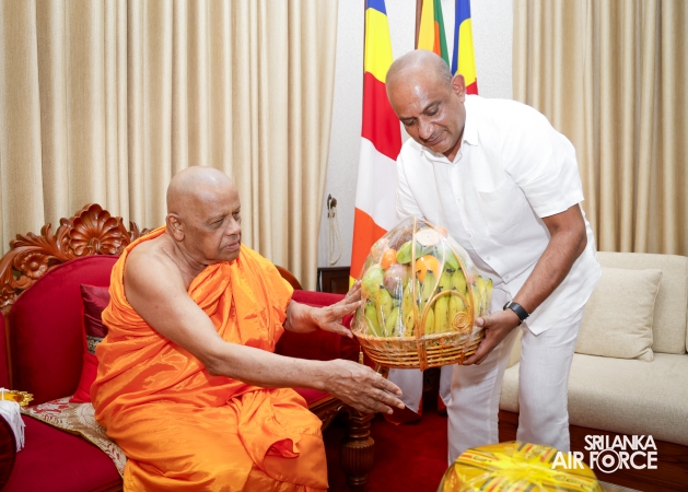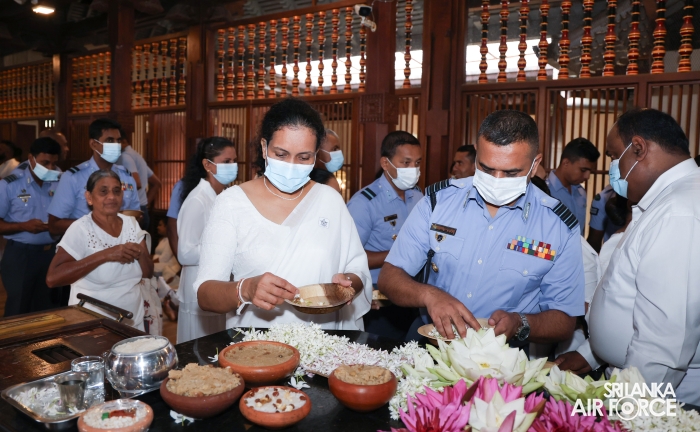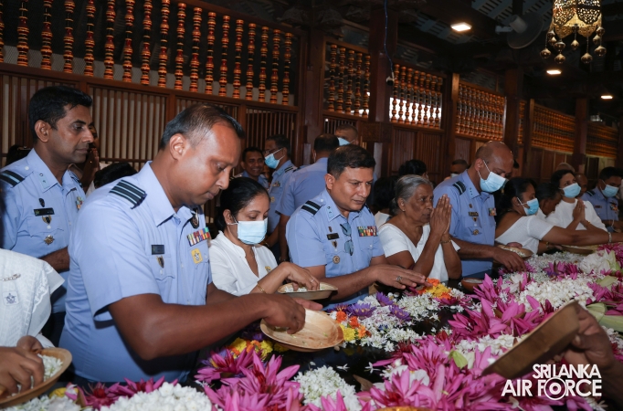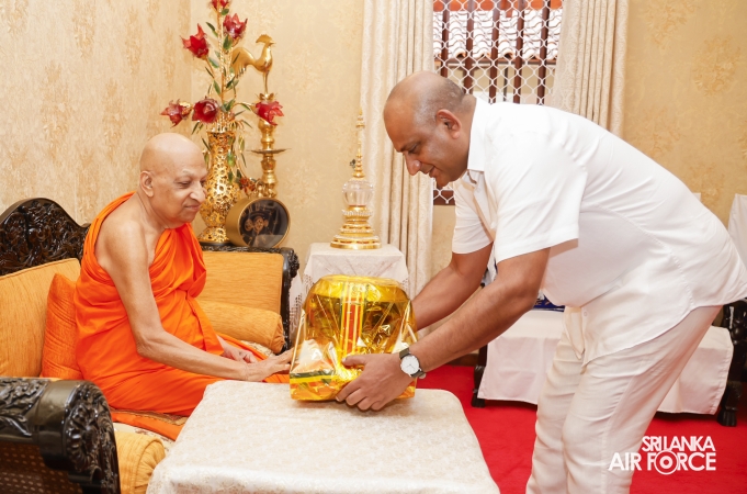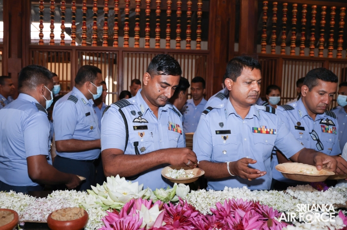 The Almsgiving ceremony held today (23 October 2025) included offerings to seventy-four Buddhist monks and was conducted in a solemn and spiritual atmosphere. The Chief Incumbents of both the Malwathu and Asgiri Chapters attended the ceremony and invoked blessings upon the Commander of the Air Force and all members of the Sri Lanka Air Force.