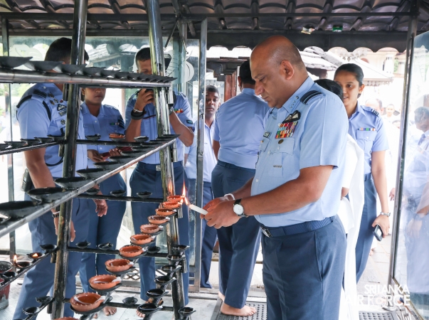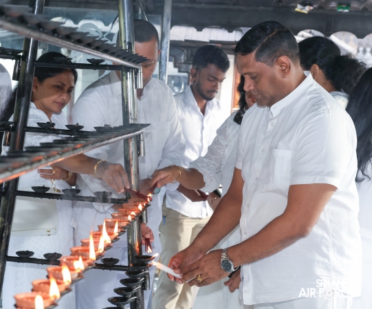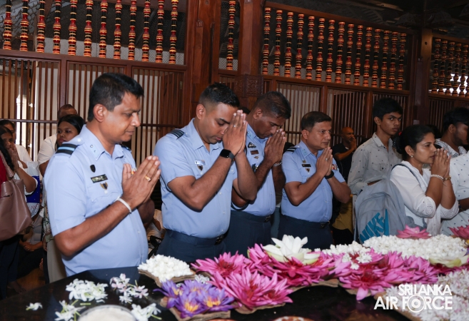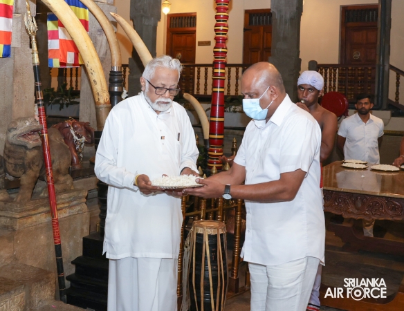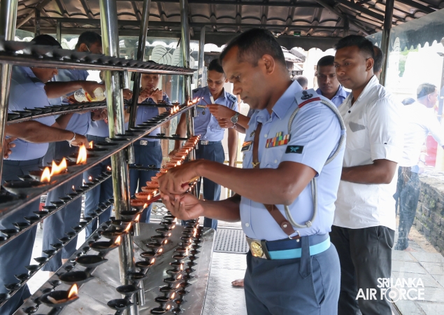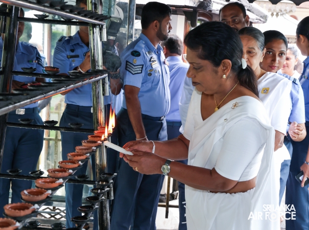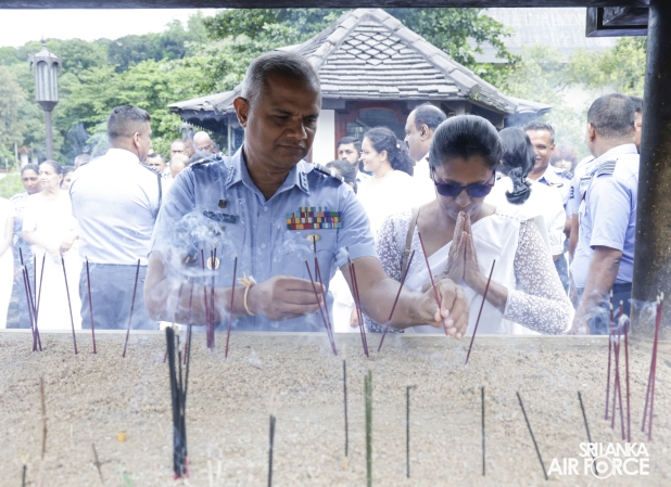 The SLAF conducted its Annual Religious Ceremony and Almsgiving at the Temple of the Sacred Tooth Relic yesterday evening (22 October 2025) and continued today (23 October 2025). The event was held under the patronage of the Commander of the Air Force, Air Marshal Bandu Edirisinghe, together with the Chairperson of the SLAF Seva Vanitha Unit, Mrs. Krishanthi Edirisinghe. This significant religious observance was organized by the Directorate of Welfare for the 15th consecutive year.