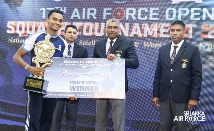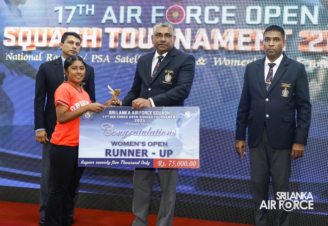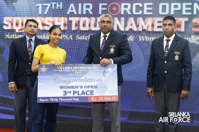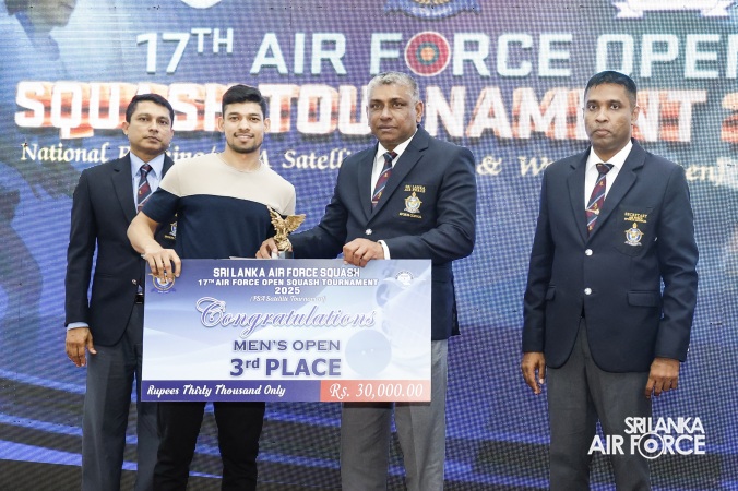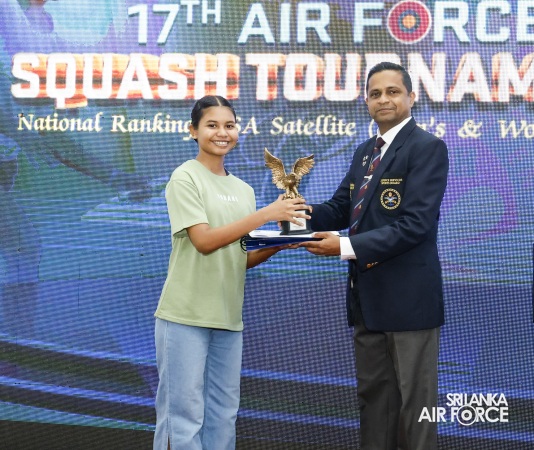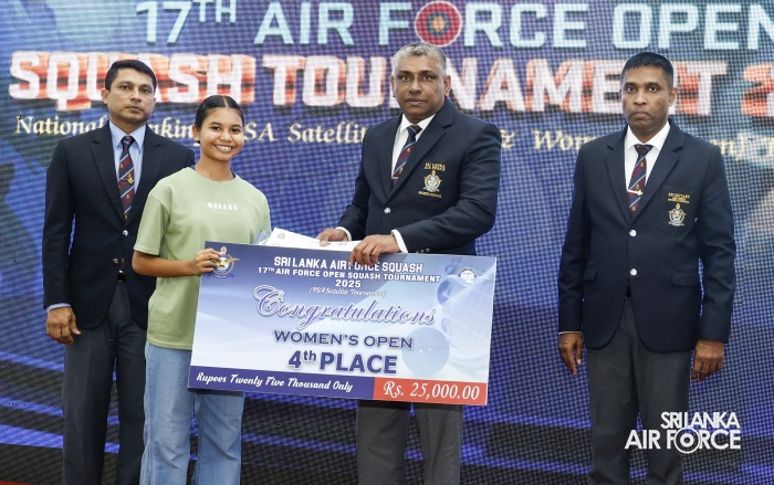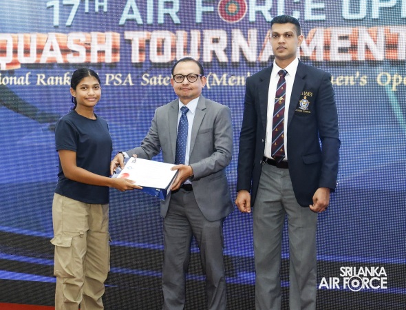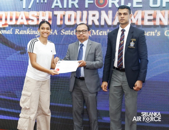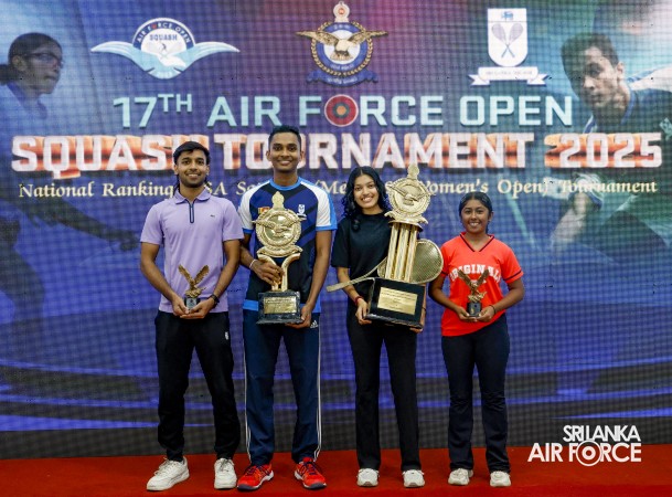 The Air Force Open Squash Tournament, conducted in adherence to international regulations under the full supervision of the Sri Lanka Squash Federation, featured participation from both local and foreign squash players, totaling over 400 participants. Players in the Men’s Open category competed for the Air Chief Marshal PH Mendis Memorial Trophy, while those in the Women’s Open category vied for the Air Chief Marshal Harry Goonetileke Memorial Trophy.