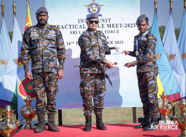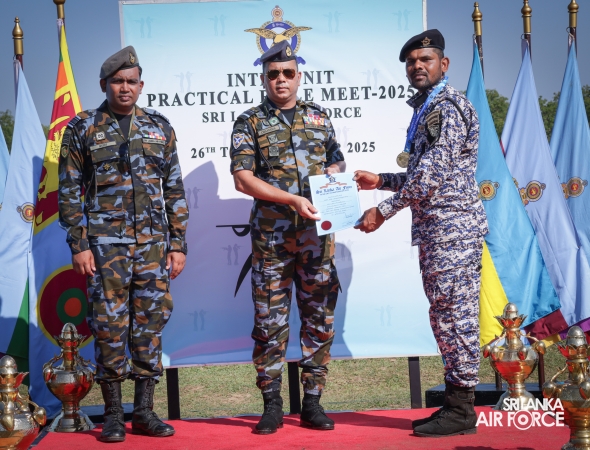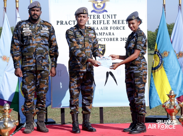 The Inter Unit Practical Rifle Meet 2025 was conducted from 26 to 30 October 2025 at the SLAF Regiment Training Centre, Ampara. The Awarding Ceremony was held at the firing range premises with the gracious presence of the Director General Ground Operations, President of the National Rifle Association of Sri Lanka and Chairman of the SLAF Shooting Air Vice Marshal Ruwan Chandima as the Chief Guest. Further, the Commanding Officer of SLAF Regiment Training Centre Ampara, Group Captain Lalith Sugathasdasa, Secretary SLAF Shooting, Squadron Leader Manoj Wijewickrama and other senior officers were also present to witness the event.