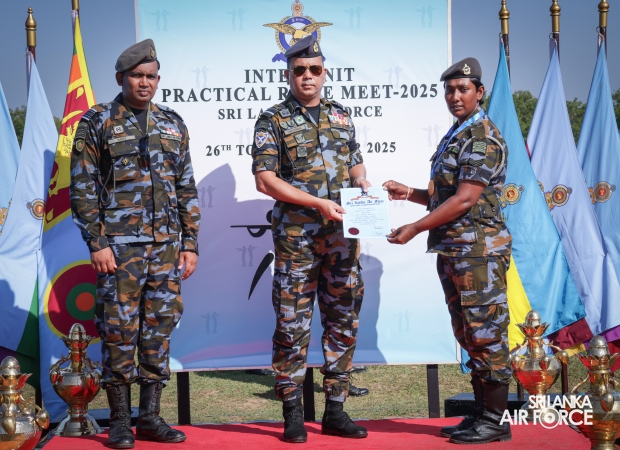 Highlighting individual performances, Flight Sergeant Wickramasinghe MAPR from SLAF Base Anuradhapura was secured the ‘Best All-Round Men’s Shooter’, while Corporal Indeewari DAA from SLAF Academy China Bay was crowned the ‘Best All-Round Women’s Shooter’. The title of ‘Best All-Round Officer’ was awarded to Squadron Leader SSKSNB Rathnayake of SLAF Base Anuradhapura.