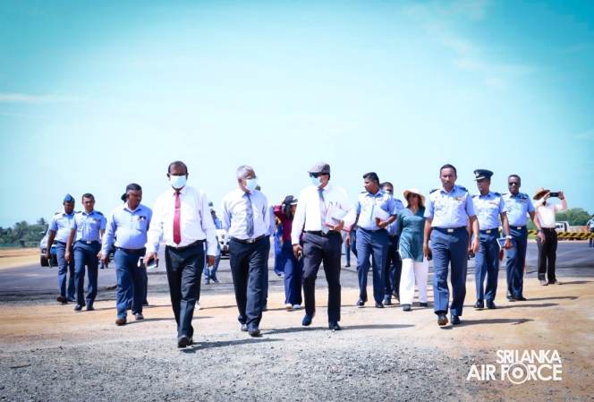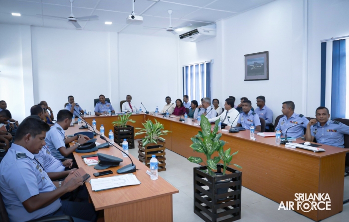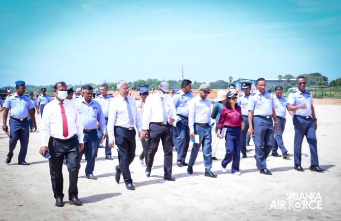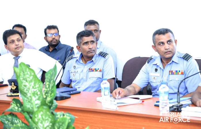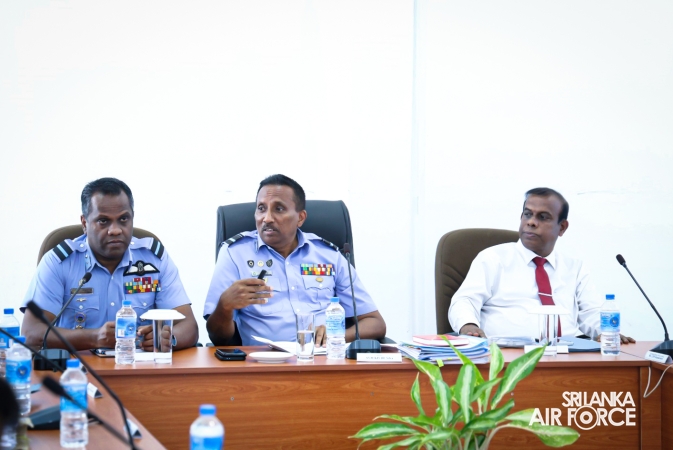 Prior to the review meeting, the visiting delegation conducted a comprehensive site inspection of the ongoing construction activities. The meeting was chaired by the Director, Special Project Management Unit, Air Vice Marshal Sumedha De Silva, in the presence of the Base Commander, SLAF Base Hingurakgoda, Air Commodore Dinesh Jayaweera.