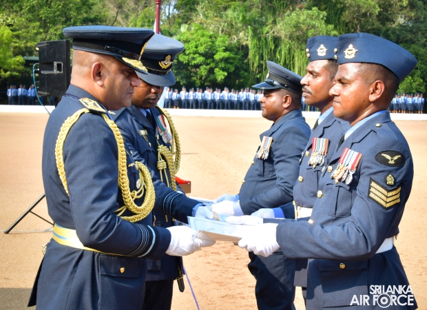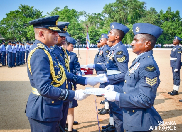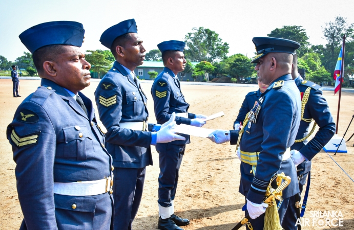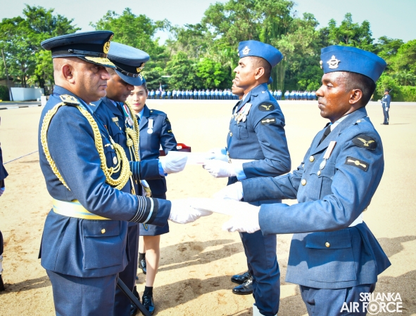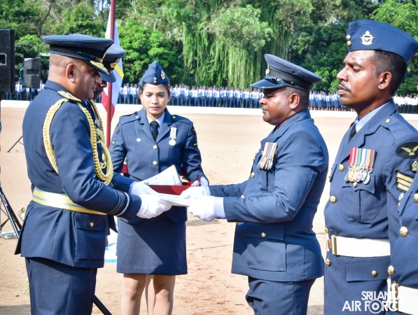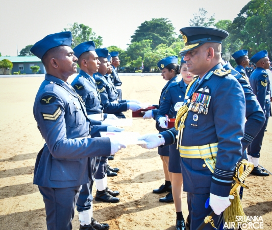 The Commander reviewed the Commander’s Inspection Parade commanded by the Base Commander of SLAF Base Ratmalana, Air Commodore Amitha Jayamaha and awarded Certificates of Commendation to the following service personnel in recognition of their outstanding contributions made to the SLAF.