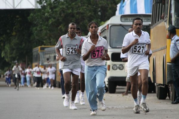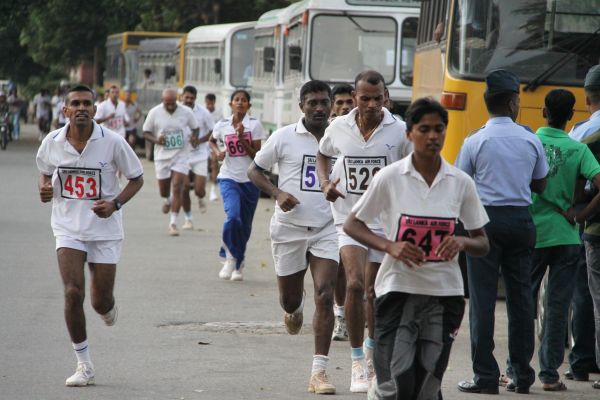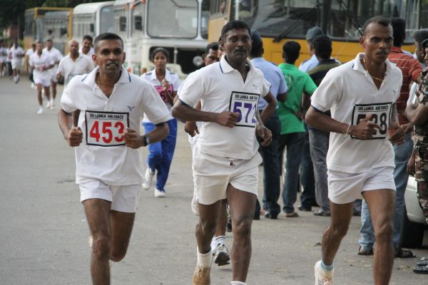 The road race for the under 35 age groups was flagged off by the Director Dental Services Air Vice Marshal Asoka Amunugama opposite the SLAF Officers Mess Thummulla. The competitors ran 5 km from Thummulla Junction, Galle Road, Liberty Roundabout, Piththala Junction, Gangarama Mawatha, Nawaloka Junction, Slave Island Color lights, Slave Island police Station and concluded the race at SLAF Colombo Rifle Green Grounds.