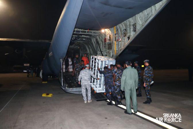 The Indian Air Force (IAF) C‑130J aircraft landed at Katunayake this evening (30 November 2025), carrying two BHISHM Cubes and a five-member medical team led by Wing Commander Sanjay Kumar.