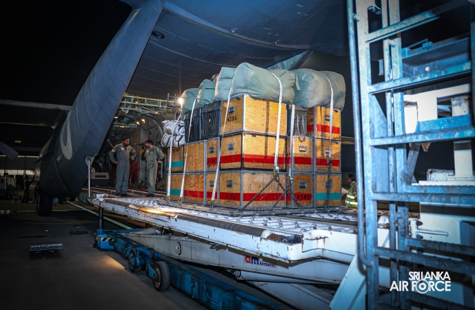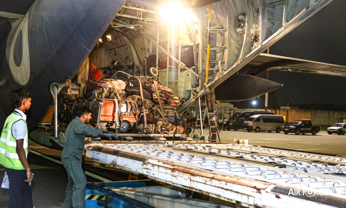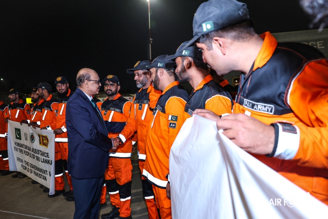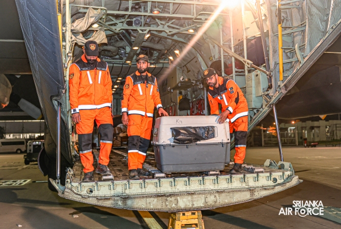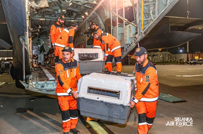 A Pakistan Air Force C-130 aircraft arrived in Sri Lanka this evening (03 December 2025), carrying a contingent of 47 personnel from the Urban Search and Rescue Team, along with specialised Search and Rescue equipment, canine support assets, and essential humanitarian supplies intended to reinforce national relief and recovery efforts.