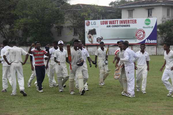 The Katunayake boys tried to cut off an impending Palaly victory by sending the opening batsman to the pavilion for no runs on the board and then the rain also did its best to wash out their victory too when the score was 25 for two wickets in just 3 overs. Keeping the bad weather in mind Palaly batted quickly and finished match in the 15th over for four wickets to take the trophy to Palaly whilst AC Silva scored unbeaten 41 runs.
