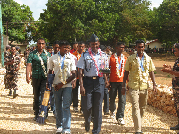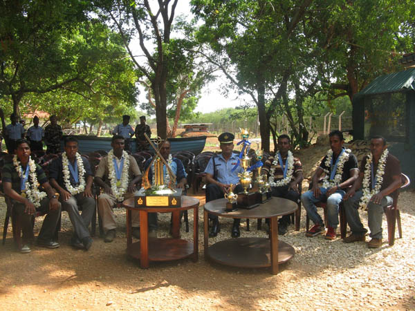 Commanding Officer of SLAF Station Palaly with the Officers’ at SLAF Station Palaly and Hundreds of exhausted but euphoric Airmen welcomed their cherished team home to SLAF Station Palaly as SLAF Inter Unit Cricket Men’s Champions on 05th Friday 2011 after a nail-biting victory over the SLAF Base Kat. SLAF Station Palaly won the Inter Unit Cricket Men’s Championship over SLAF Base Kat on 03rd Wednesday 2011 at Rifle Green grounds at SLAF Colombo.
