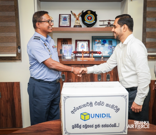 The symbolic handover of the consignment was carried out by the Managing Director of Unidil Group of Companies, Mr. Sameera Liyanage and was received by the Senior Staff Officer Personnel & Planning Directorate of Health Services, Air Commodore AHPP Kariyapperuma, on behalf of the SLAF.