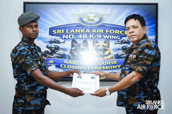 This programme was conducted for the second time since 2020, following a hiatus during the COVID-19 pandemic, marking a significant step in enhancing the operational readiness of SLAF K-9 Wing. The newly trained Military Working Dogs will be deployed at Bandaranaike International Airport, Mattala Rajapaksa International Airport and Jaffna International Airport to carry out narcotic search and clearance duties.