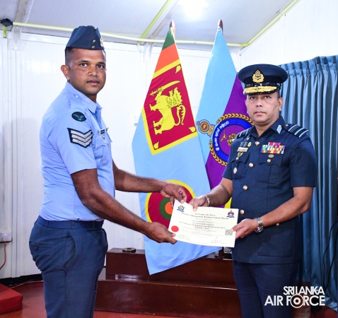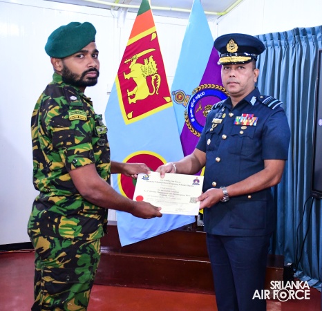 A total of 29 trainees received their certificates at the ceremony, comprising one officer and twenty airmen from the SLAF, one officer and two other ranks from the Sri Lanka Army, three sailors from the Sri Lanka Navy, and one officer and one Police Constable from the Special Task Force.