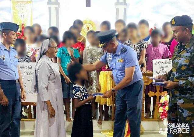 SLAF Station Iranamadu provided educational assistance to children residing at the ‘Trust Girls’ Hostel’ in Ramanadhapuram village, Kilinochchi, yesterday (30 December 2025), in line with the Christmas celebrations.