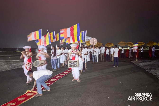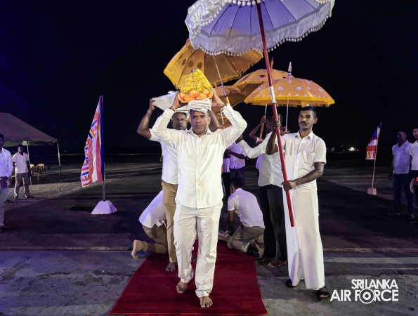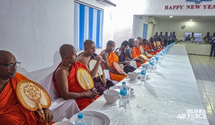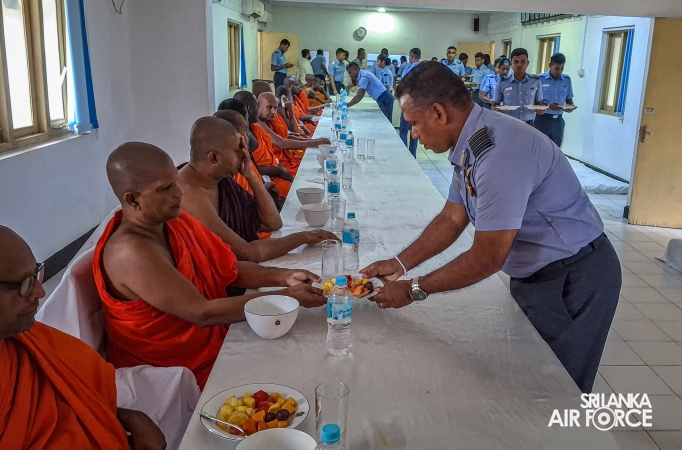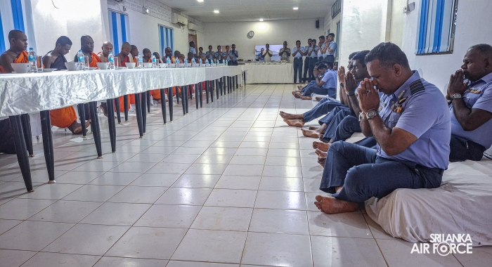 As part of the Station Day commemorations, an all-night Pirith Chanting Ceremony was held yesterday (02 January 2026) in remembrance of SLAF personnel who made the supreme sacrifice for the motherland. The anniversary programme concluded today (03 January 2026) with an almsgiving offered to the Venerable Maha Sangha at the station premises.